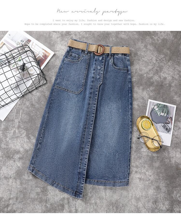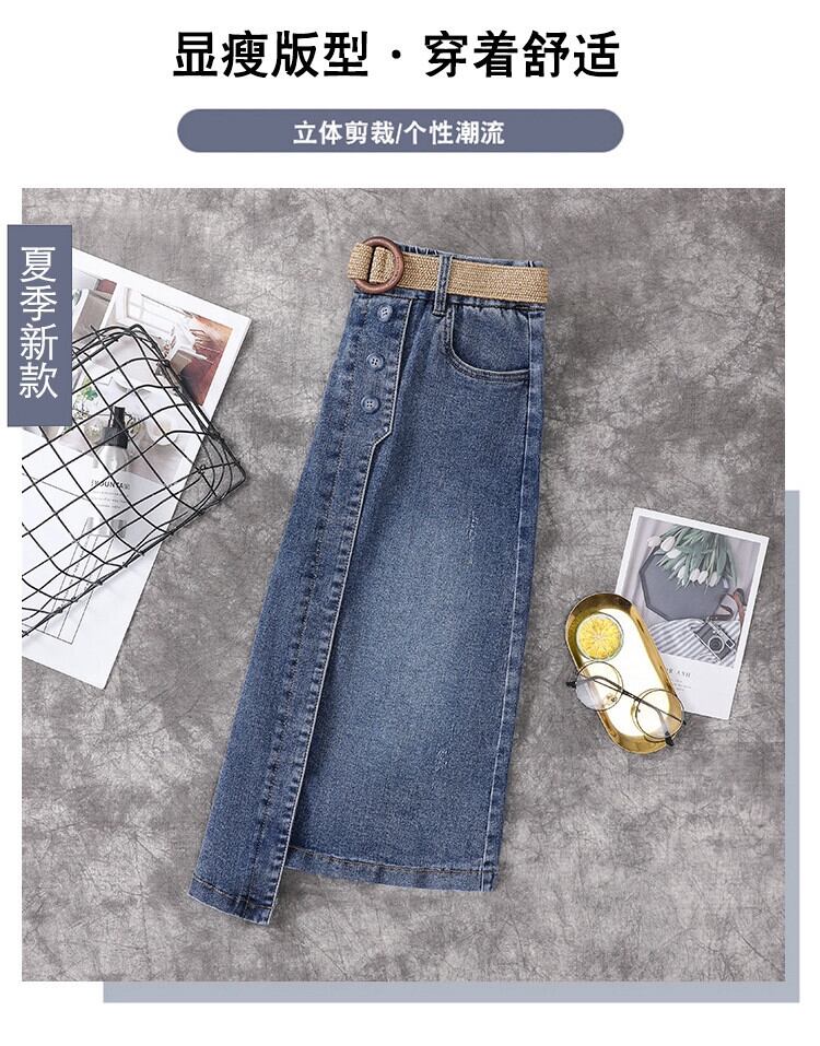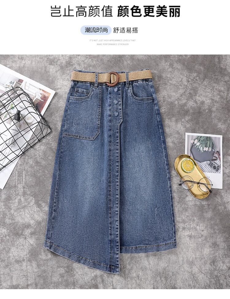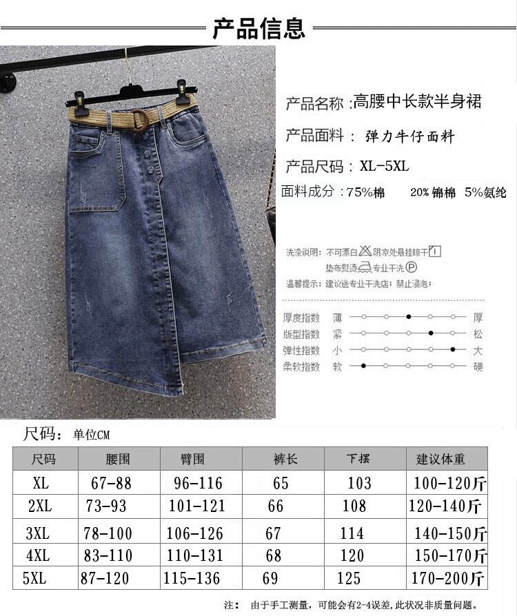 プラスサイズの婦人服 2023 夏服脂肪姉妹バージョンのミッドレングス A ラインスカート弾性カジュアルハイウエストデニムスカート エラスティック 伸縮 大きめサイズ サマー 夏物 Aライン 8884138023848979