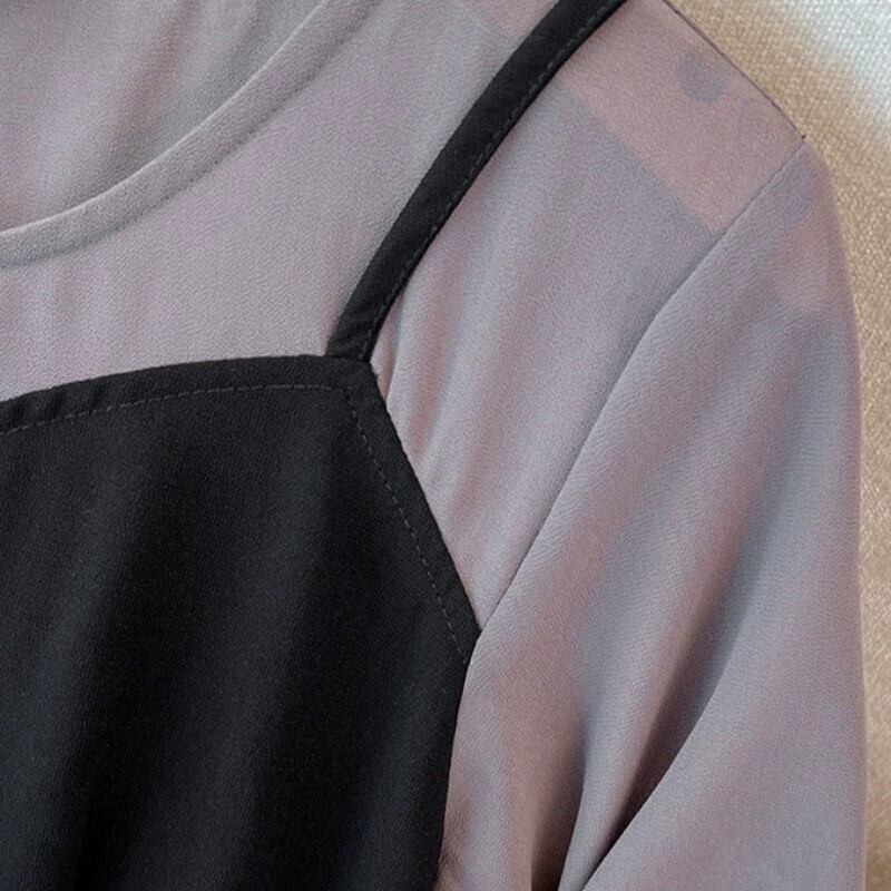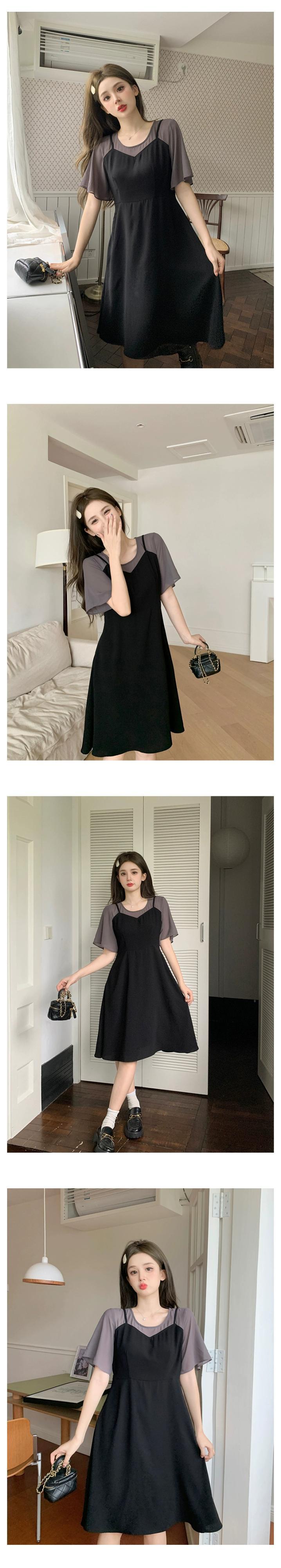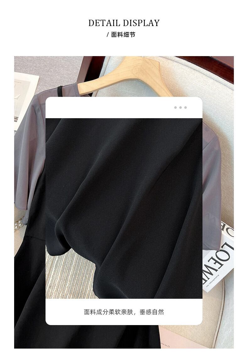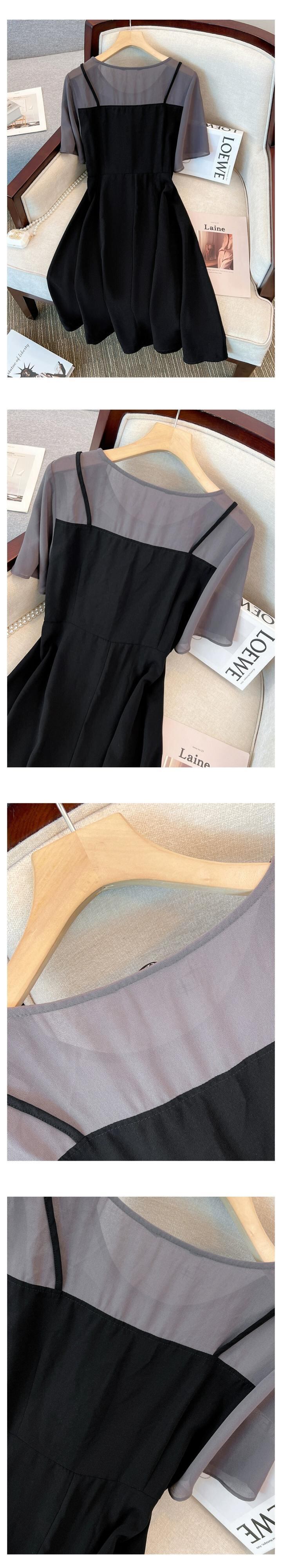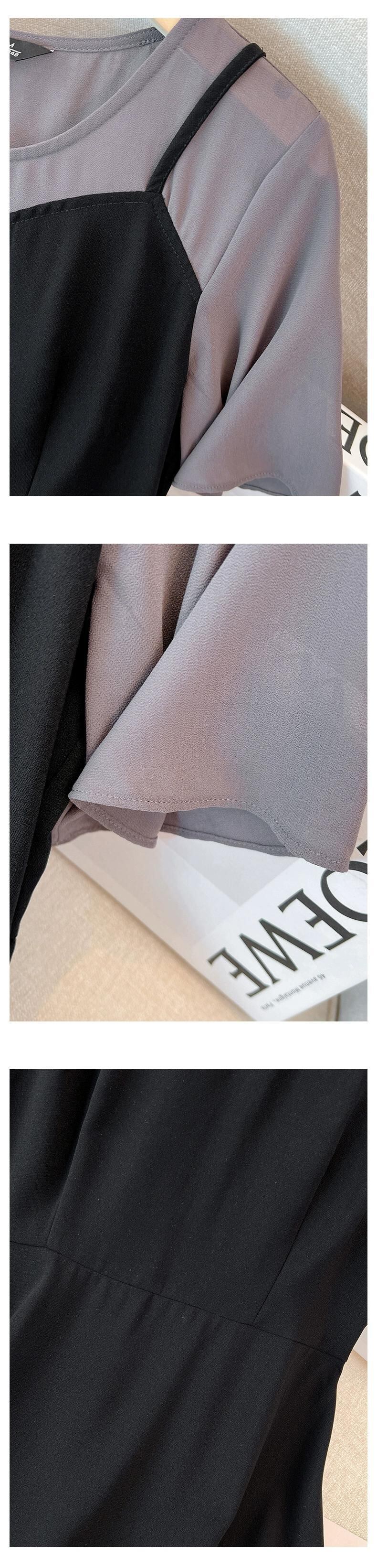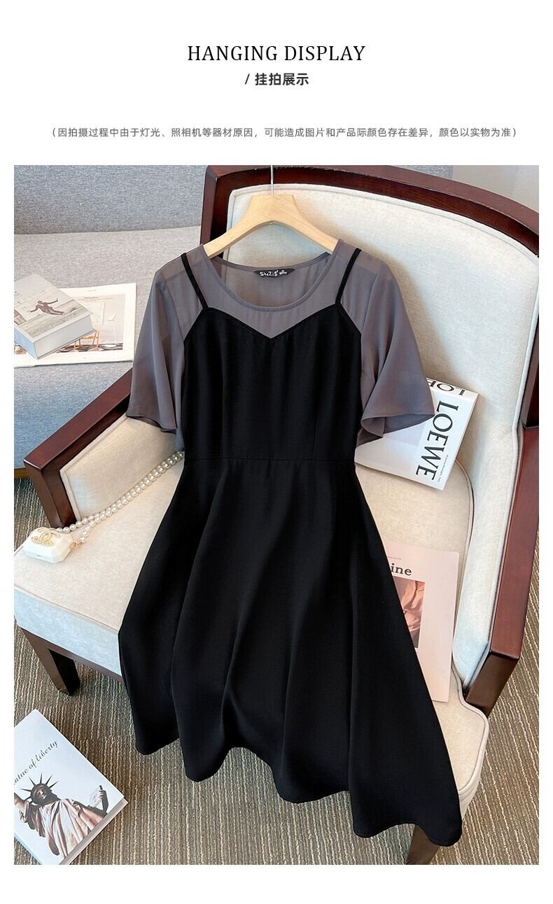 プラスサイズの婦人服 2023 流行の夏の新しい脂肪姉妹シフォンステッチ半袖ドレスカジュアルフェイクツーピーススカート 大きめサイズ サマー 夏物 8884111076758942