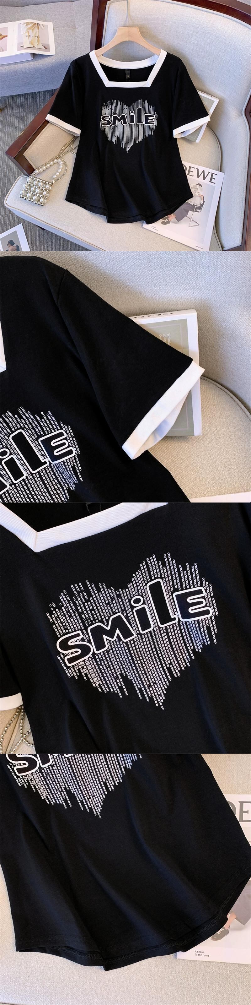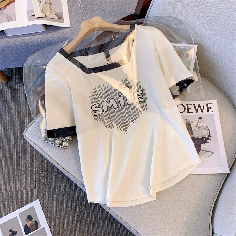 プラスサイズの婦人服 2023 夏服ファットシスターファッションカジュアル Tシャツスリム半袖デザインお腹をカバーするシックなトップス 大きめサイズ サマー 夏物 888411530370288