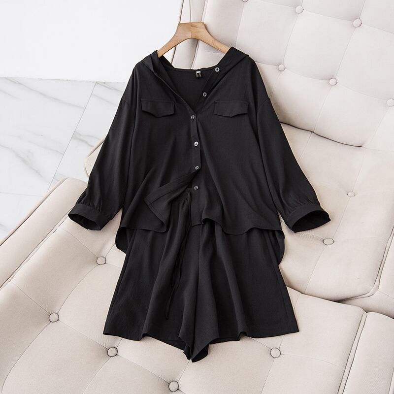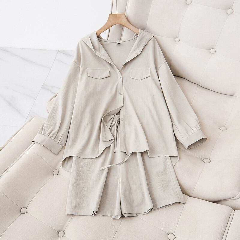 プラスサイズの婦人服 2023 ファットシスターサマードレス西洋スタイル年齢軽減カーディガンカジュアル弾性ウエストショーツ 2 点セット エラスティック 伸縮 大きめサイズ 夏物 ブルマー 8884161985718035