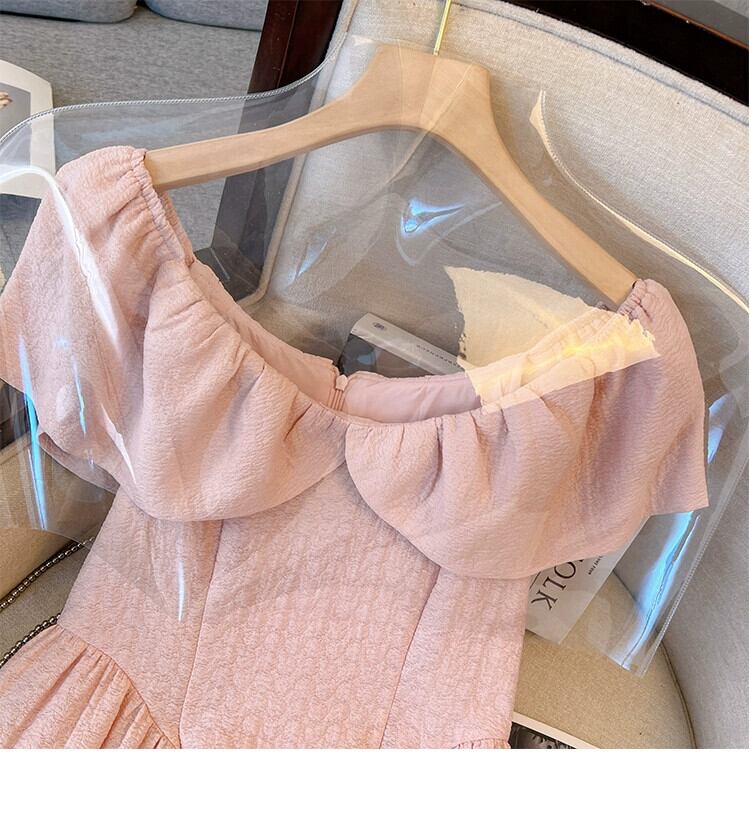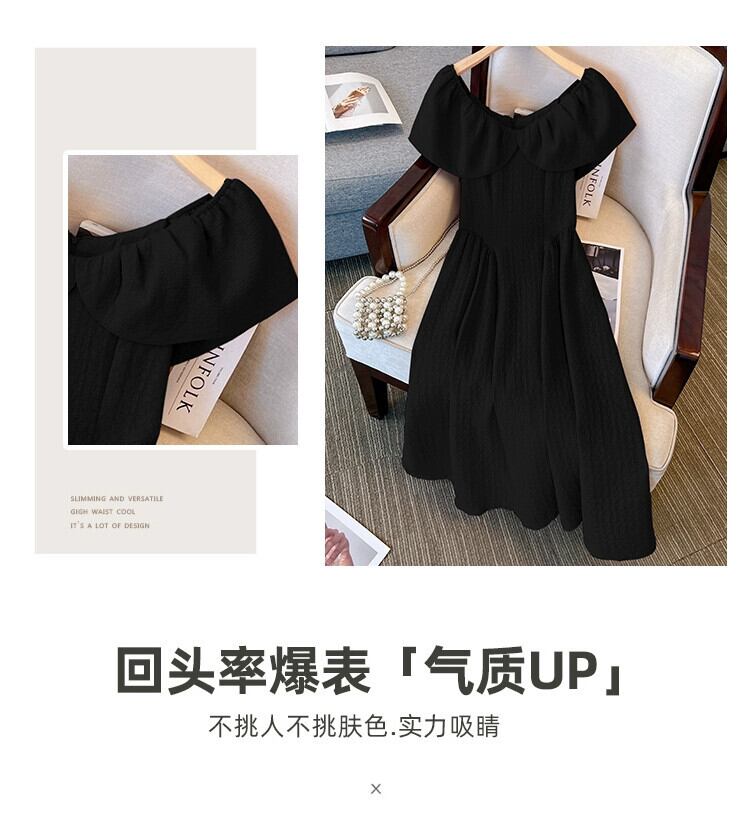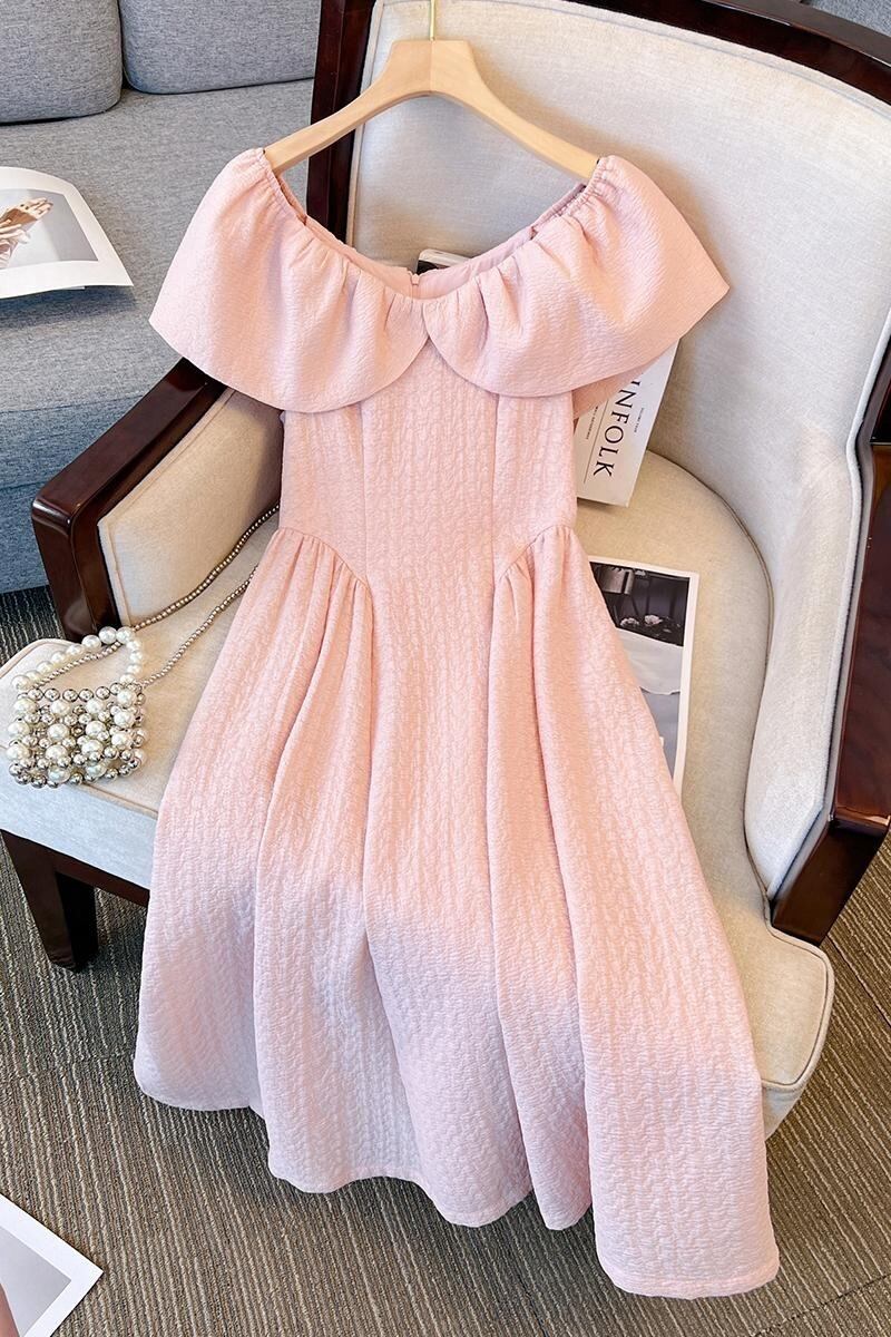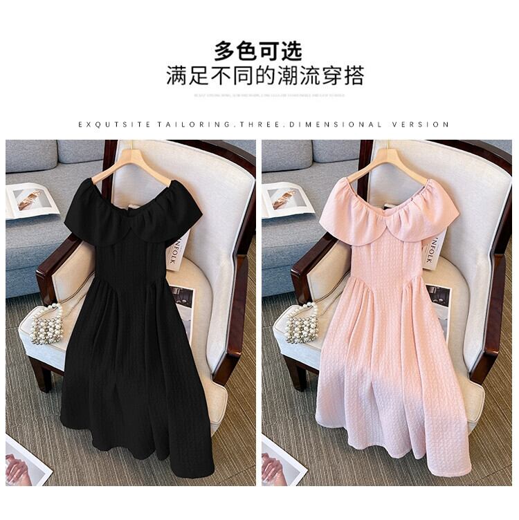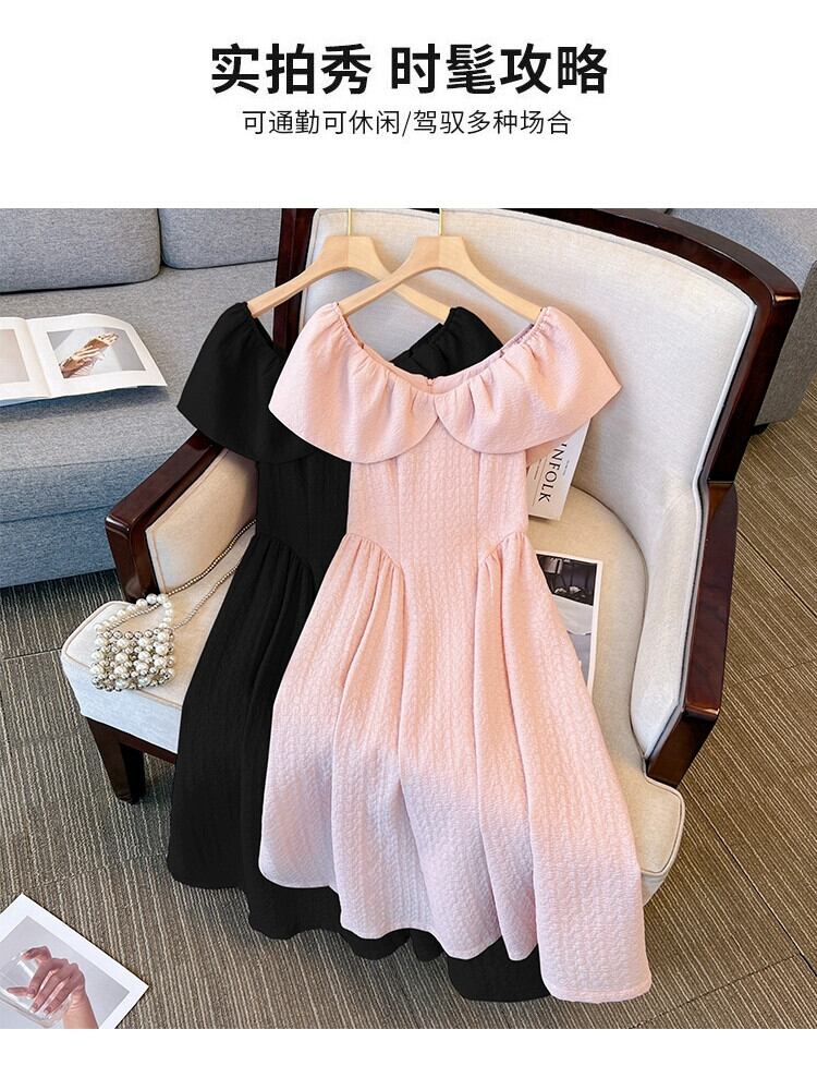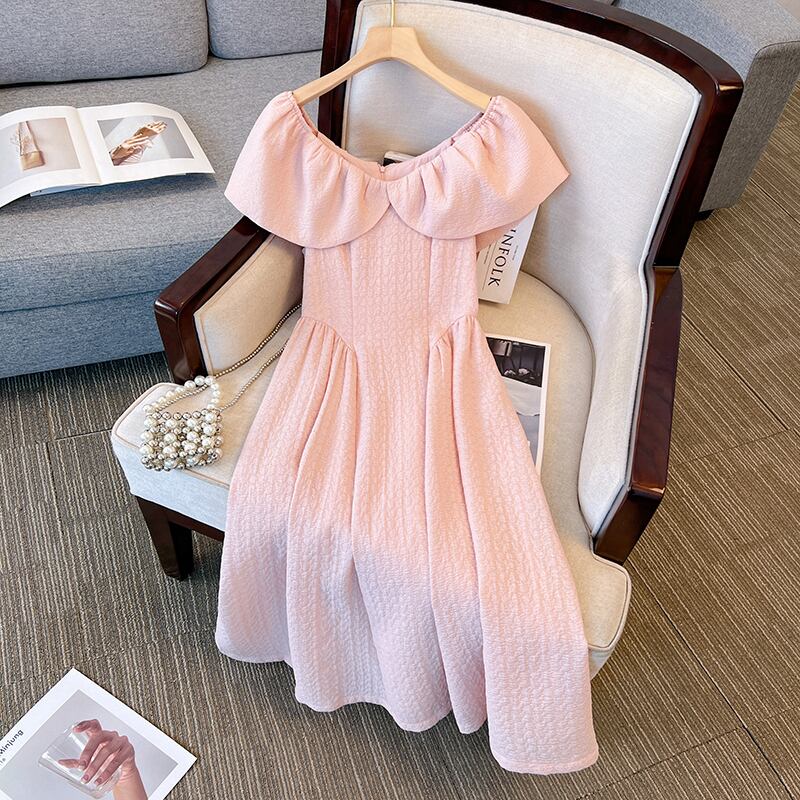 プラスサイズの婦人服 2023 夏服脂肪姉妹バージョンフレンチ V ネック年齢軽減スカートウエスト無地カジュアルドレス 大きめサイズ サマー 夏物 Vネック ソリッドカラー 8884114219554722