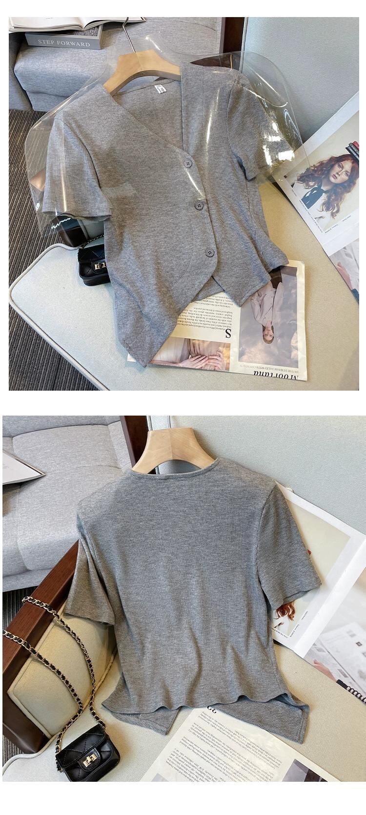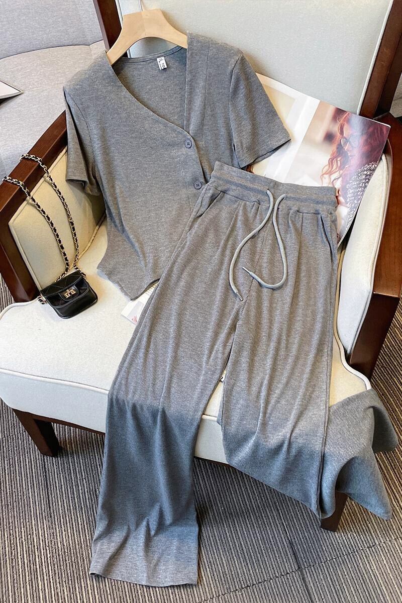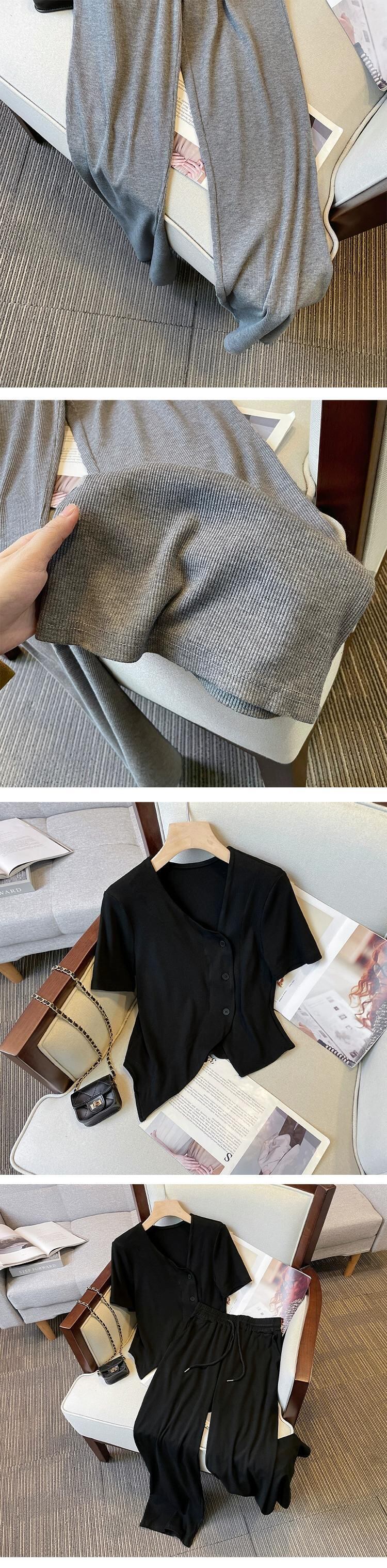 プラスサイズの婦人服 2023 ファットシスター夏のファッションスーツデザイン不規則な T シャツワイドレッグパンツ 2 点セット 大きめサイズ サマー 夏物 Tシャツ 8884159953144093
