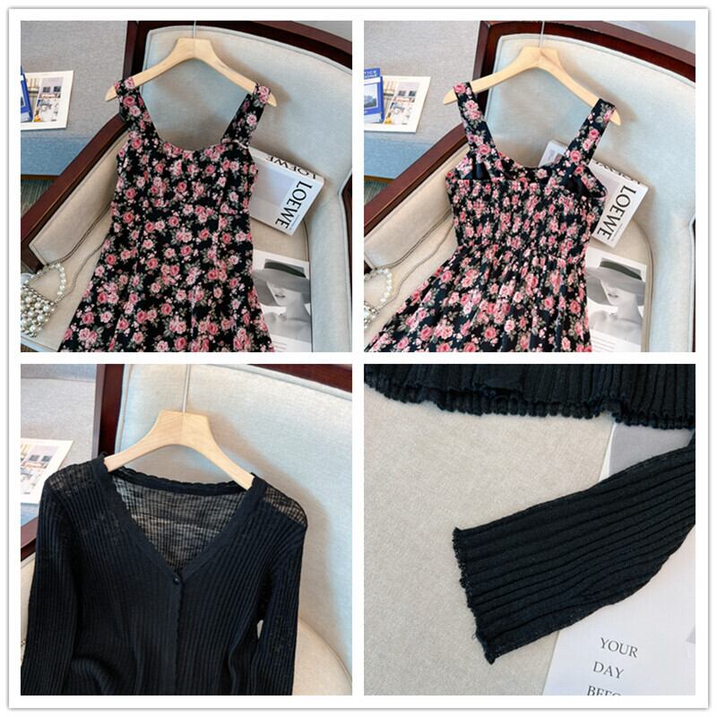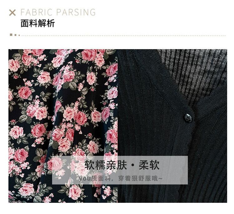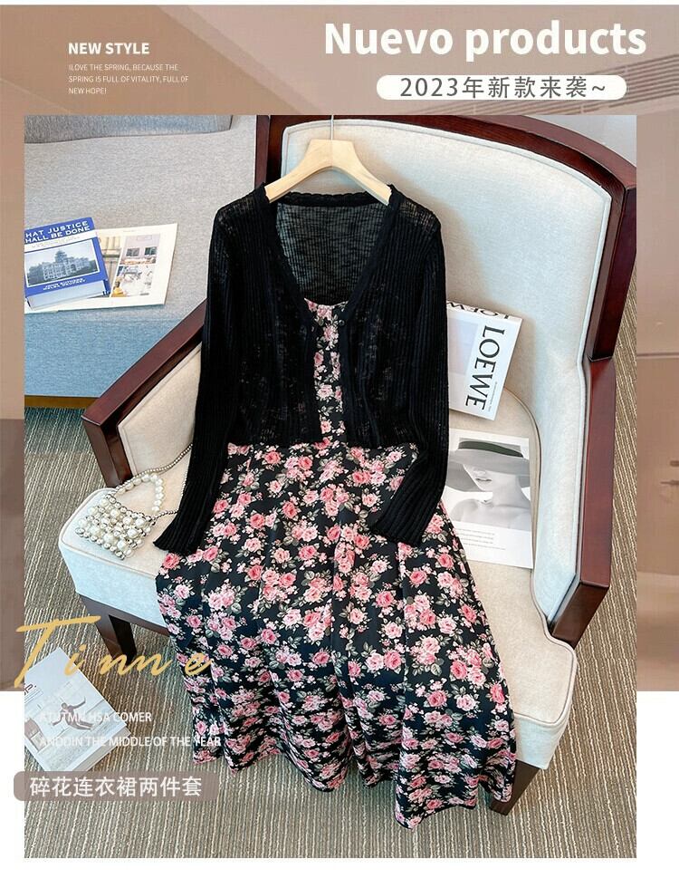 プラスサイズの婦人服 2023 ファットシスターサマードレスフレンチスーツ花柄ドレススリムサスペンダースカートカーディガン 2 点セット 大きめサイズ 夏物 8884186416504479