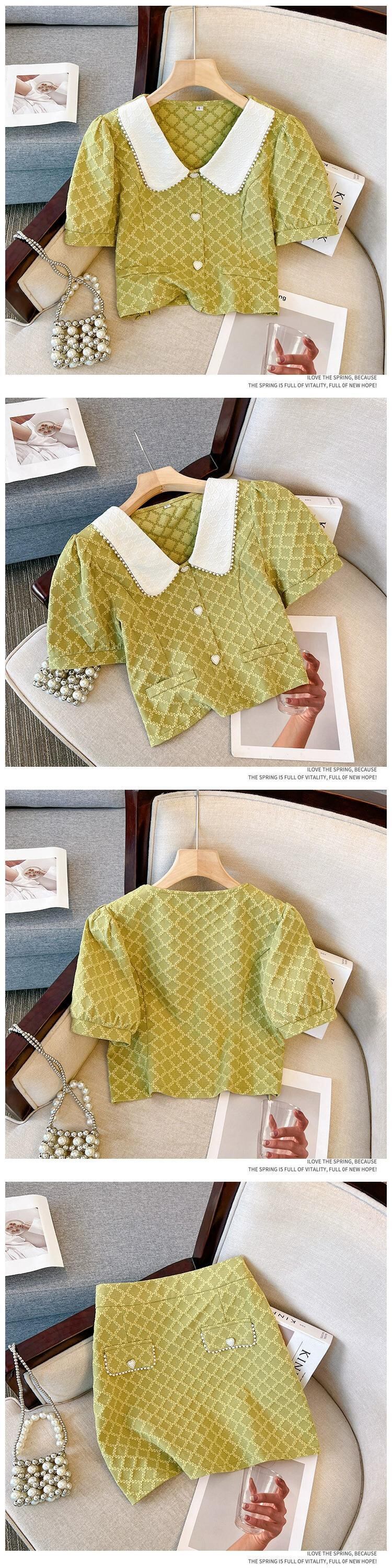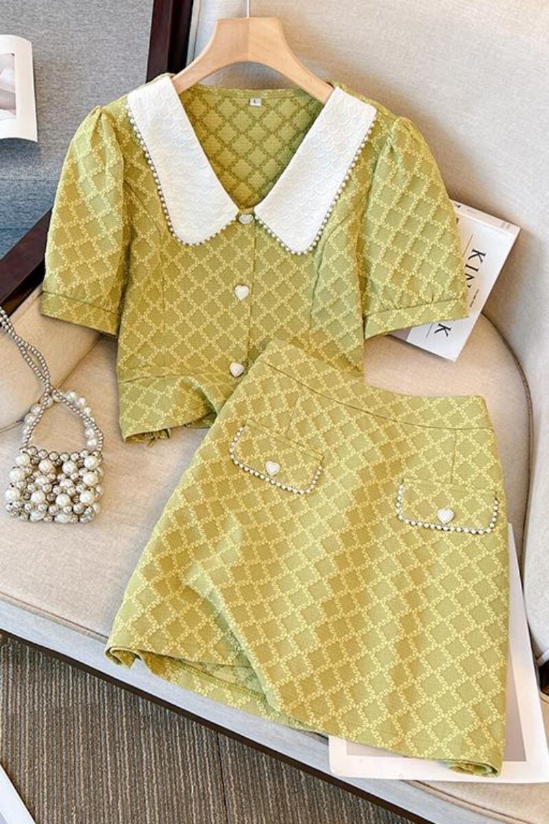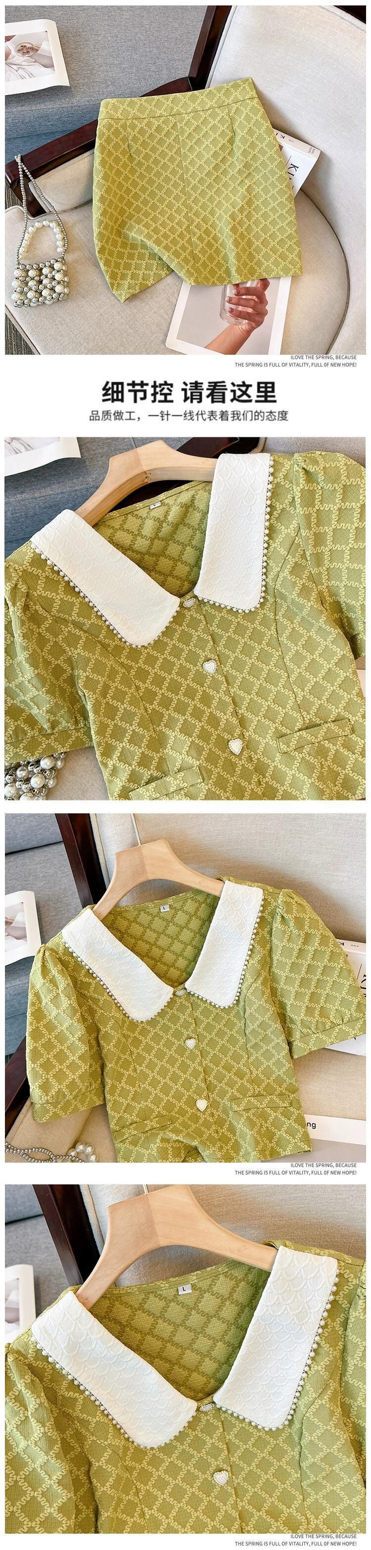 プラスサイズの婦人服 2023 夏服太った妹の年齢を減らす eign スタイルの人形の襟のトップシックなハイウエストスカート 2 点セット 大きめサイズ サマー 夏物 8884124377000389