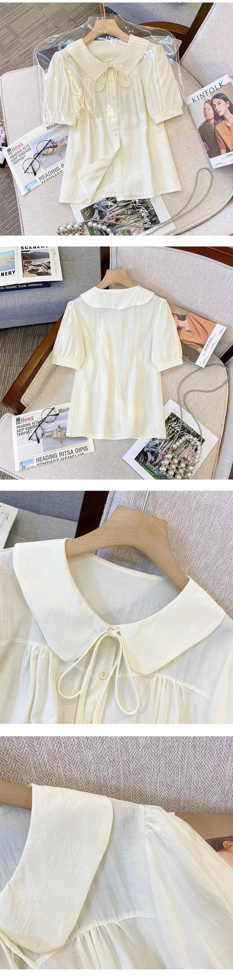 プラスサイズの婦人服 2023 トレンディな夏の新しいファットシスターデザインセンスオールマッチ痩身小さなシャツ eign スタイル半袖シフォンシャツ 大きめサイズ サマー 夏物 8884122548470546