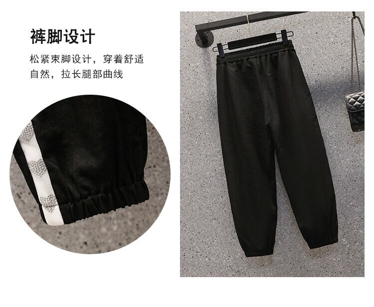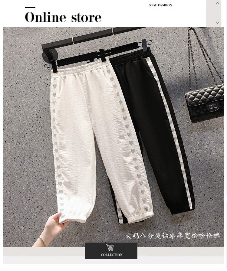 プラスサイズの婦人服 2023 脂肪姉妹夏新ルースアイス麻ダイヤモンド薄部ハーレムパンツ弾性ウエストクロップドパンツ エラスティック 伸縮 大きめサイズ サマー 夏物 8884147198939164