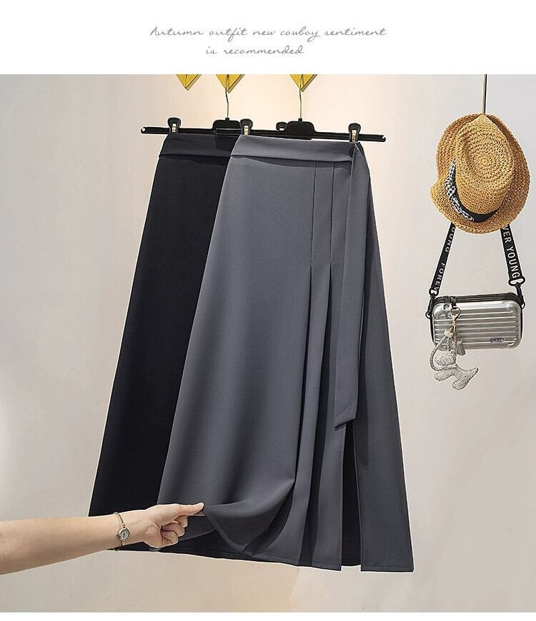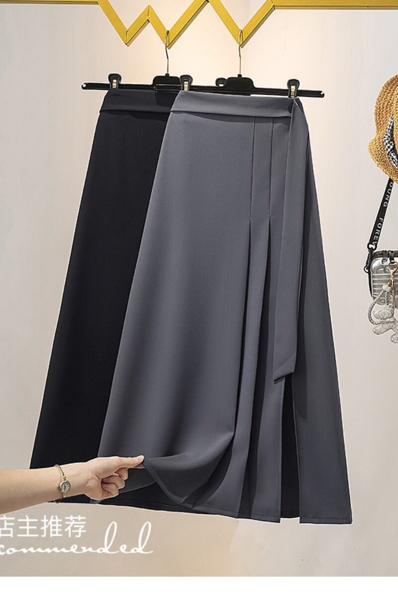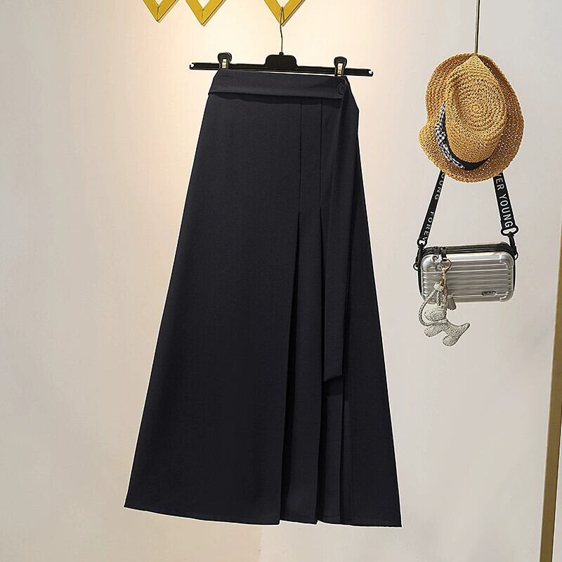 プラスサイズの婦人服 2023 ファットシスター夏新作スーツスカートデザイン感の薄いプリーツスリット A ラインスカート 大きめサイズ サマー 夏物 Aライン 8884133087757170