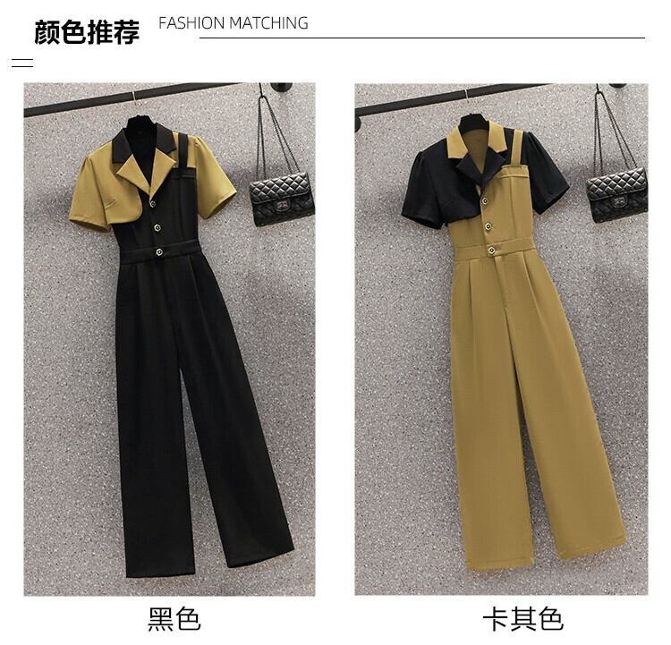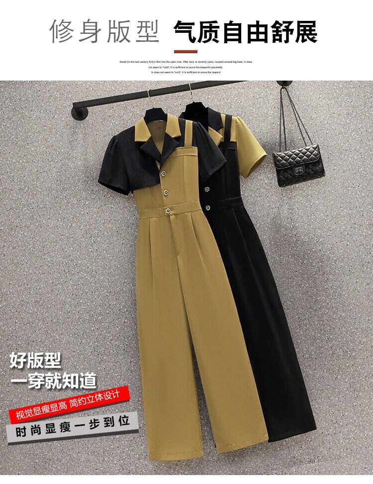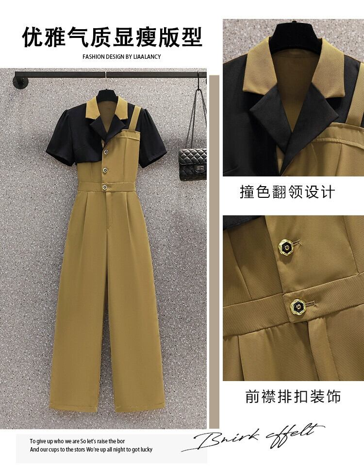 プラスサイズの婦人服 2023 流行の夏の新しいファットシスターファッション年齢軽減スーツデザインセンスジャケットジャンプスーツツーピーススーツ 大きめサイズ サマー 夏物 8884110903029183