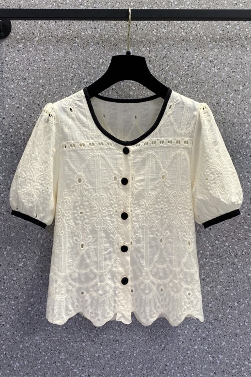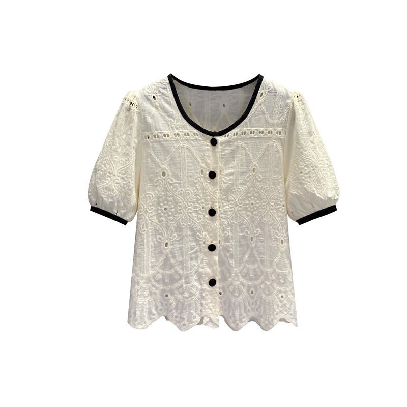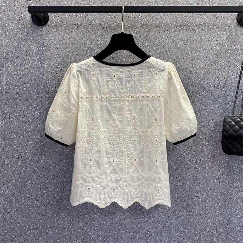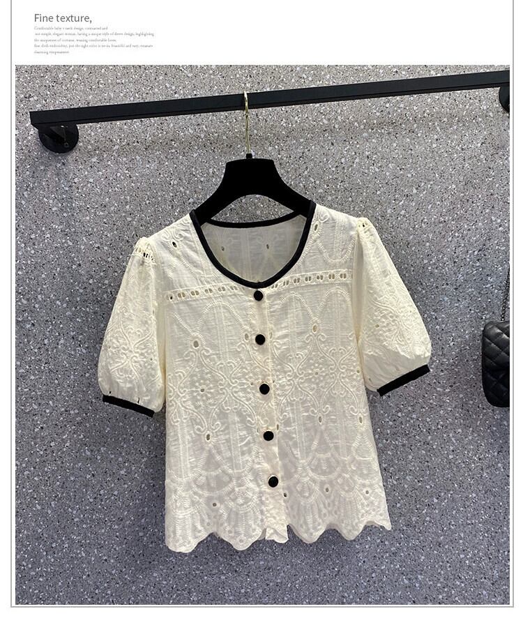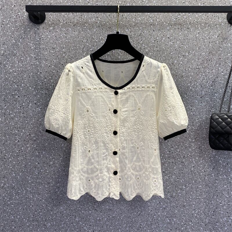 プラスサイズの婦人服 2023 流行の夏の新しいファットシスター慎重なマシン中空半袖シャツフレンチニッチカーディガントップ 大きめサイズ サマー 夏物 8884140464644518