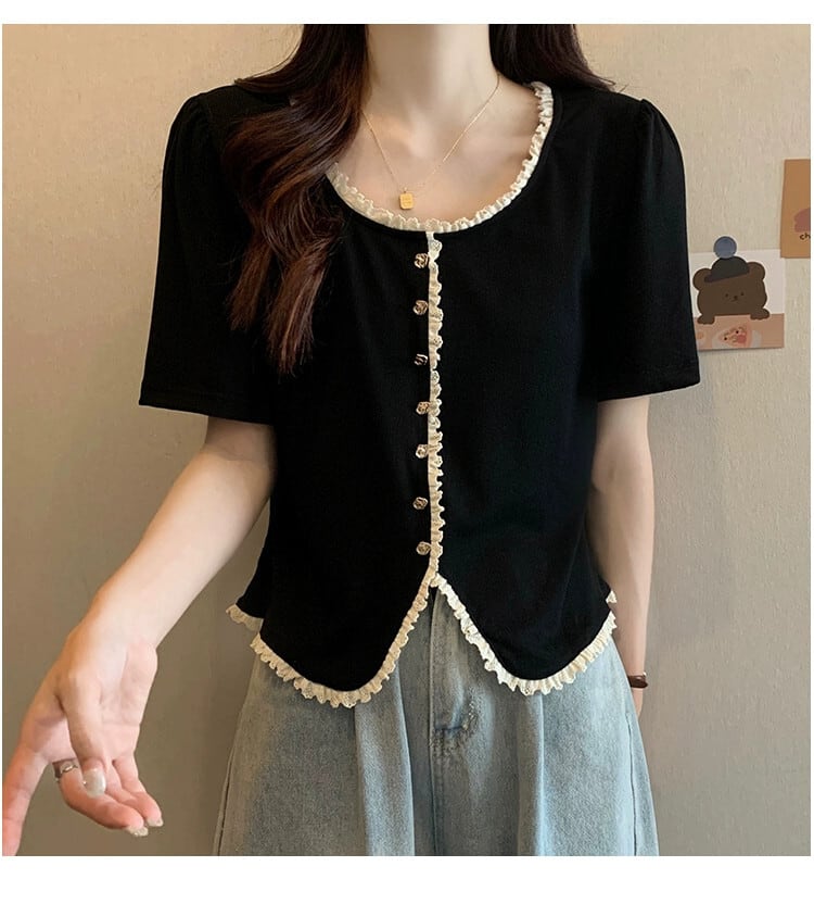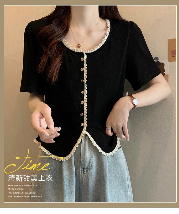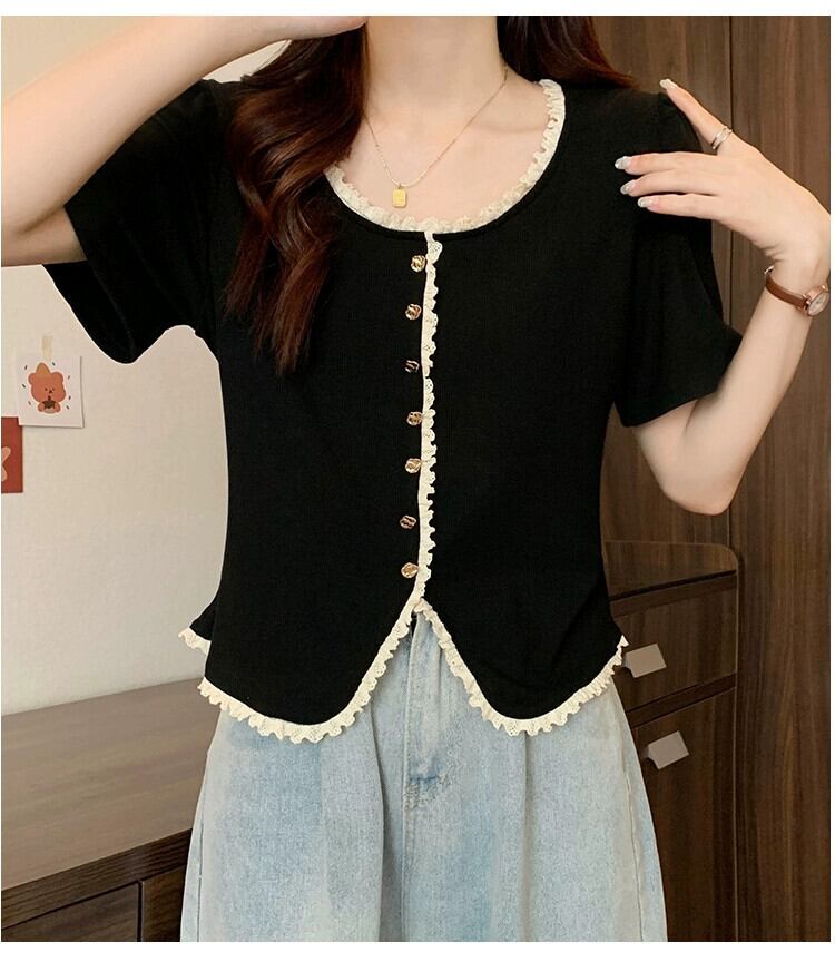 プラスサイズの婦人服 2023 夏服ファットシスターデザインセンスカーディガン Tシャツニット半袖デザインセンスベリーカバートップ 大きめサイズ サマー 夏物 8884157451966296