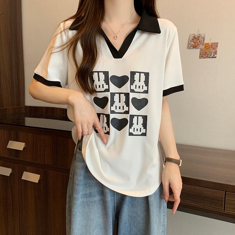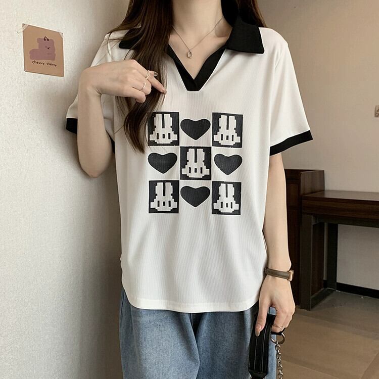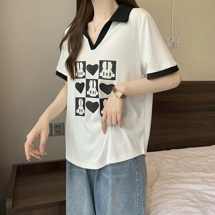 プラスサイズの婦人服 2023 ファットシスター夏の新ファッションオールマッチカバー肉痩身シックなプリント tシャツ半袖トップ 大きめサイズ サマー 夏物 8884193421734632