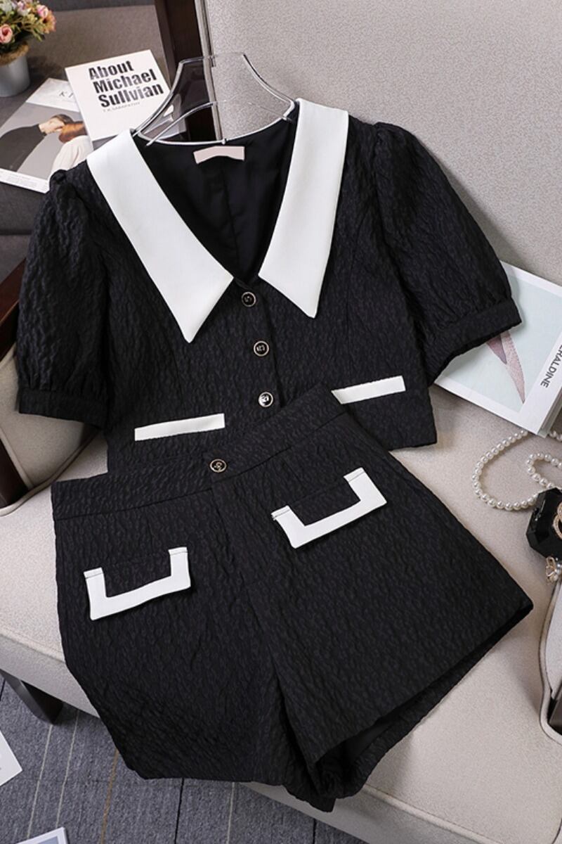 プラスサイズの婦人服 2023 流行の夏の新しいファットシスターファッションオールマッチスーツ年齢軽減痩身ジャケットショーツ 2 点セット 大きめサイズ サマー 夏物 ブルマー 8884190403785842