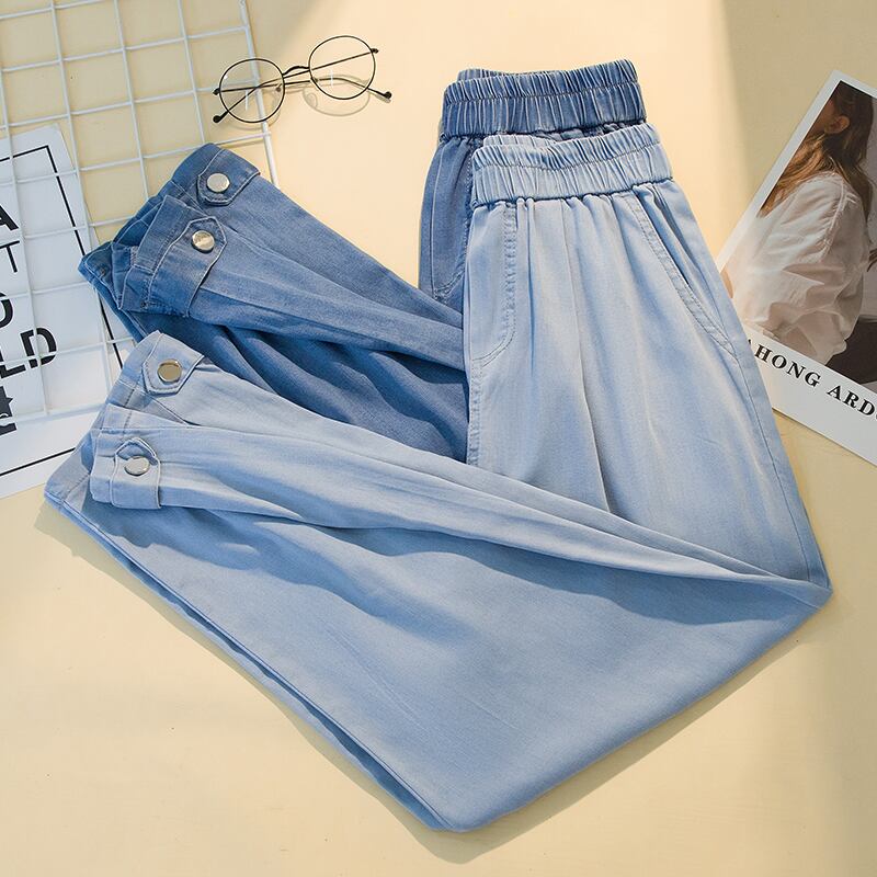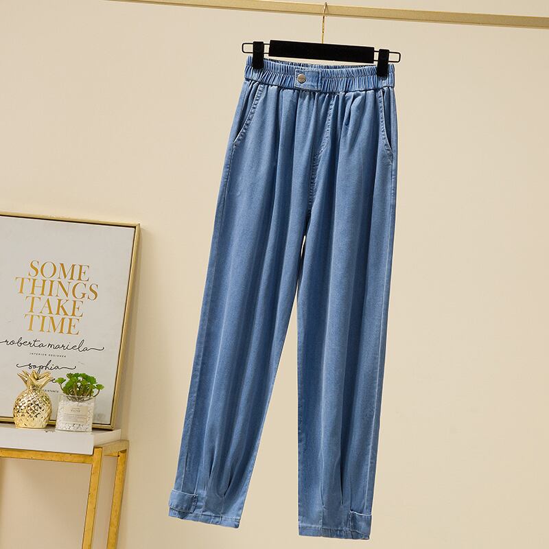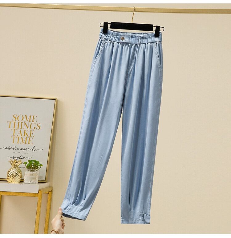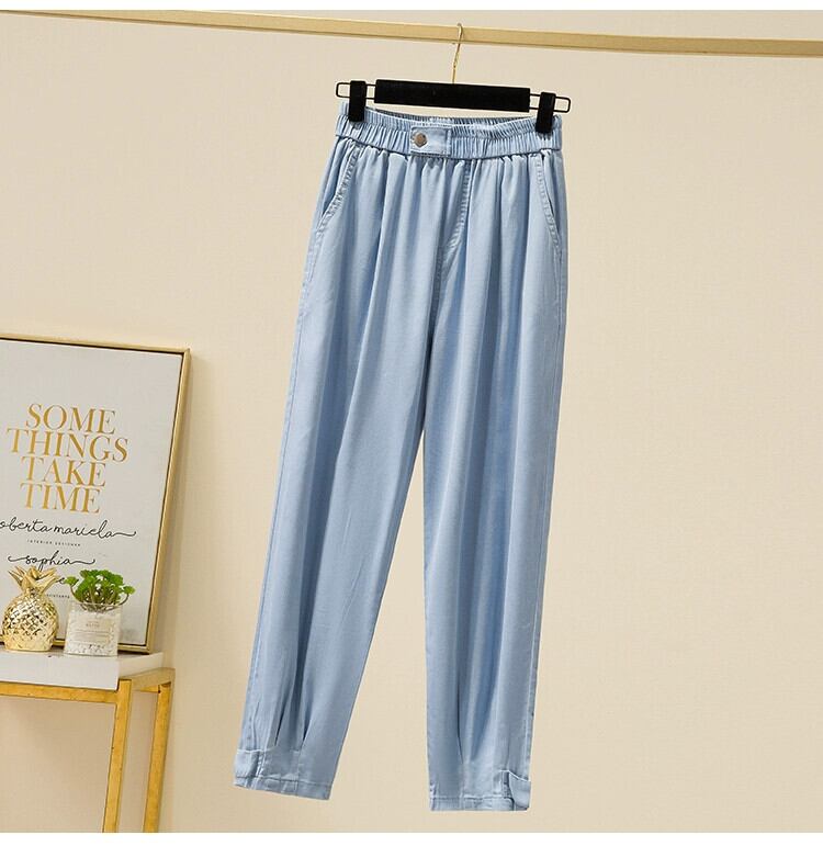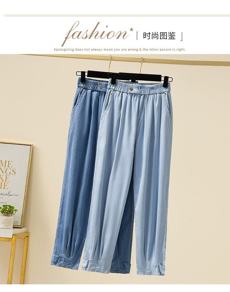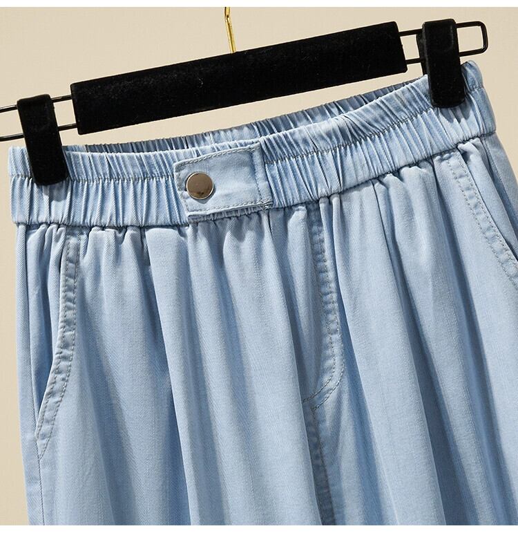 プラスサイズの婦人服 2023 ファットシスターサマードレステンセルハイウエスト弾性ウエストベルトボタン 9 点パンツスリムハーレムパンツ ハイウェスト エラスティック 伸縮 大きめサイズ 夏物 ハーネス 888417072104346