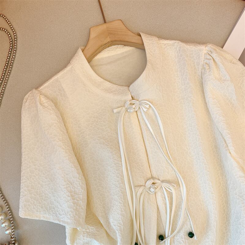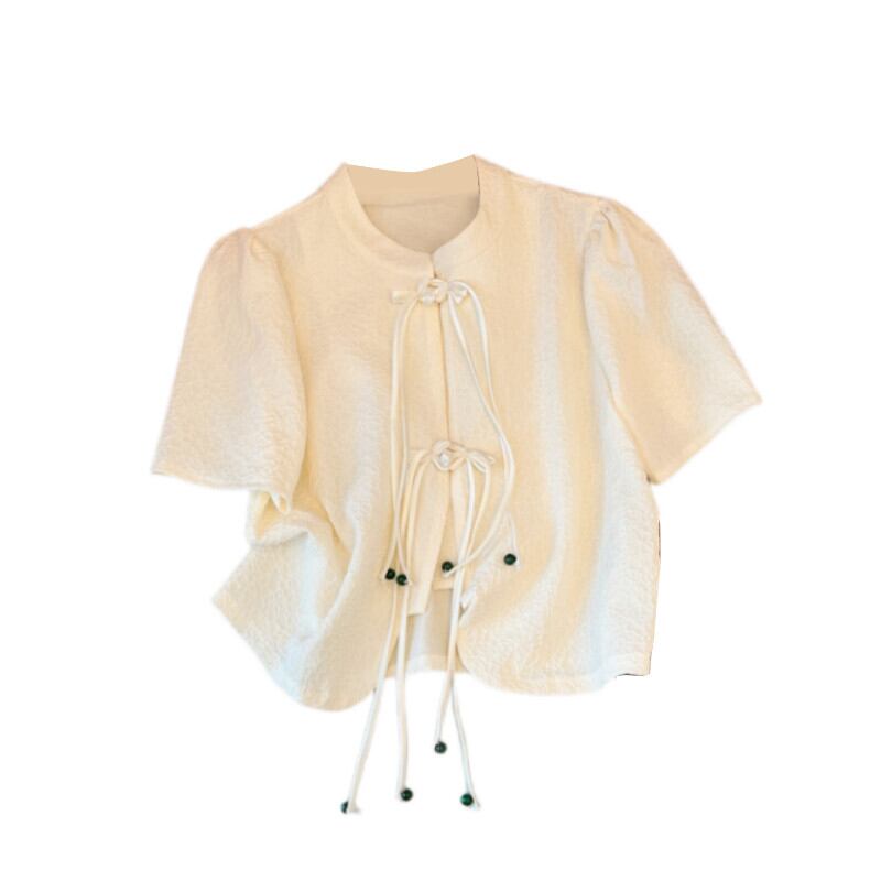 プラスサイズの婦人服 2023 ファットシスター夏新スタイルレトロナショナルスタイルバックルスタンドアップカラーシャツテルスリムショートトップ 大きめサイズ サマー 夏物 8884118758098708