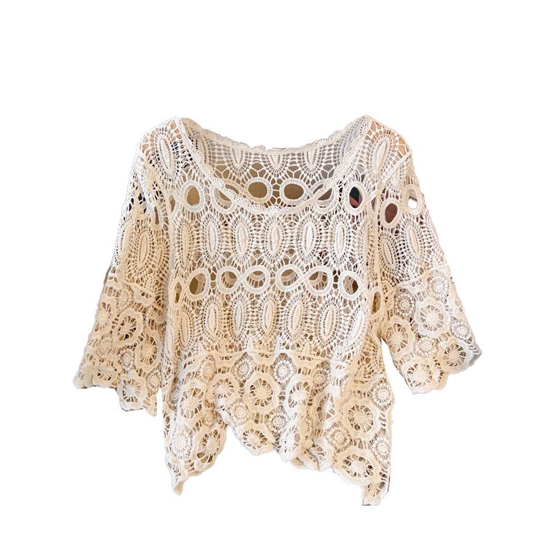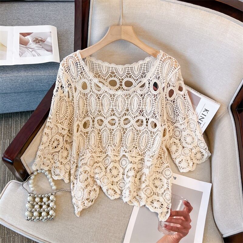 プラスサイズの婦人服 2023 脂肪姉妹夏新しいレース中空メッシュシャツ刺繍ファッションブラウスショール日焼け止め服 大きめサイズ サマー 夏物 8884199989012517