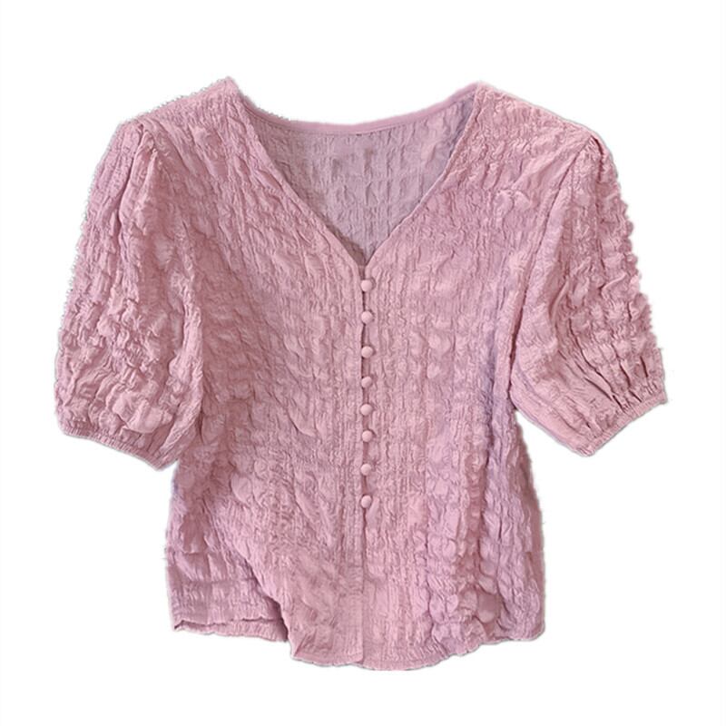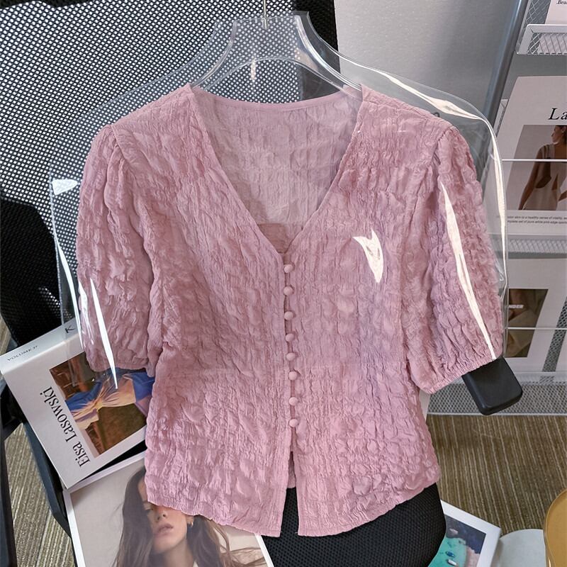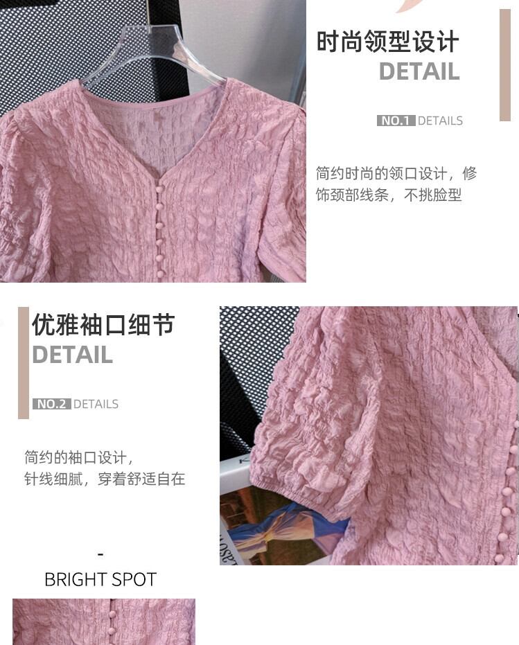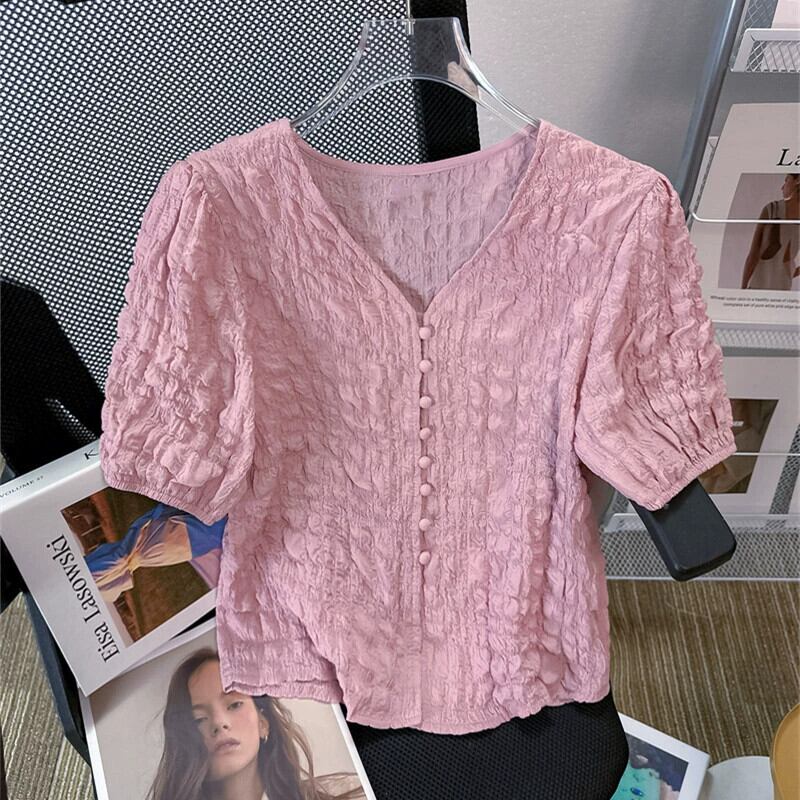 プラスサイズの婦人服 2023 夏服ファットシスターファッション折り目パフスリーブシャツ半袖ニッチシックカジュアルトップ 大きめサイズ サマー 夏物 8884181969706148