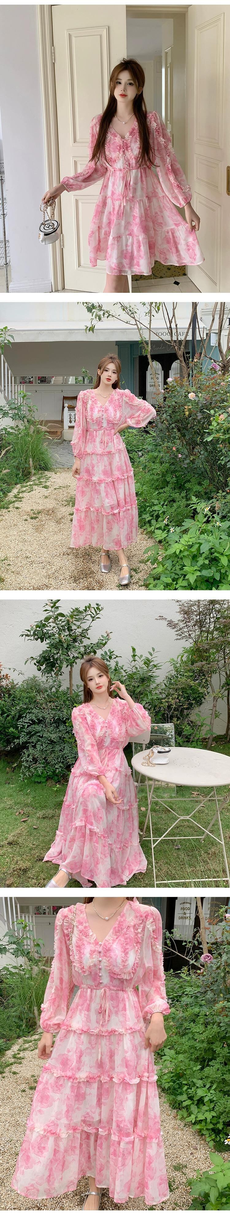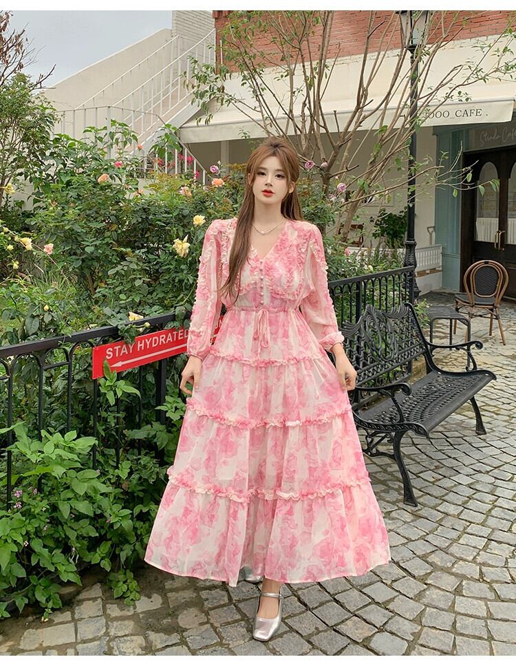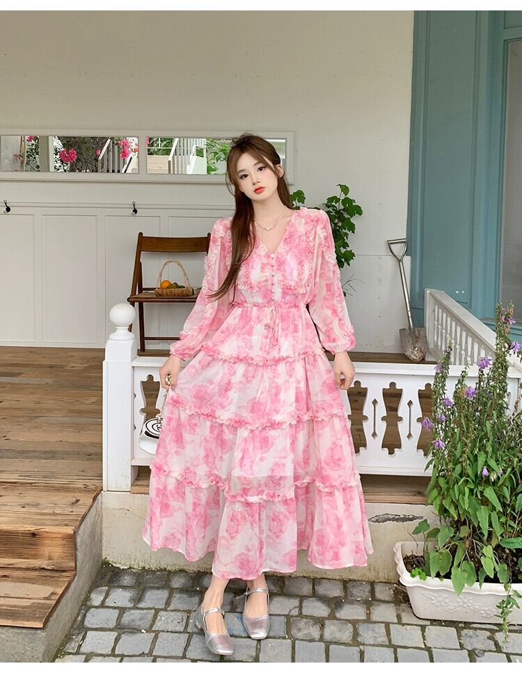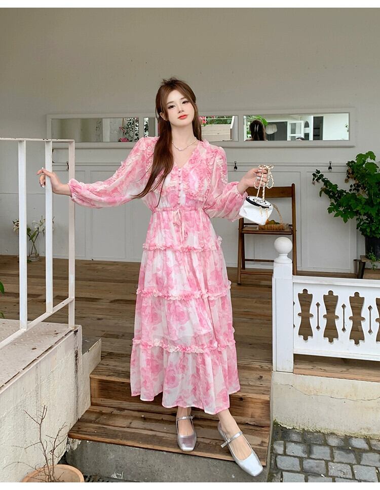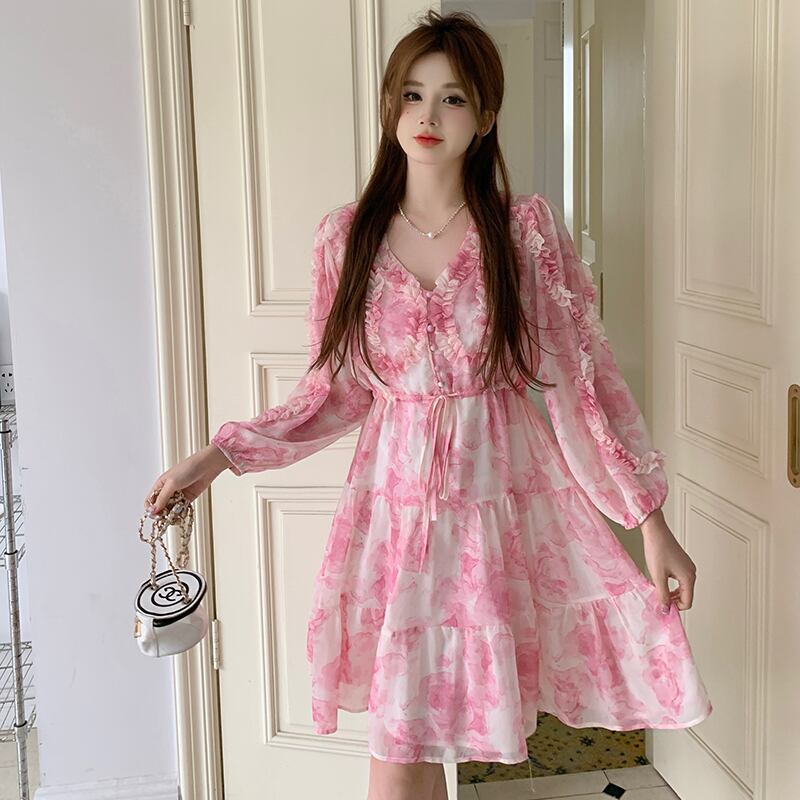 プラスサイズの婦人服 2023 脂肪姉妹春の新ピンクのティーブレイクスカートフレンチニッチデザインのハイエンドドレス 大きめサイズ スプリング 春物 8884154924285916
