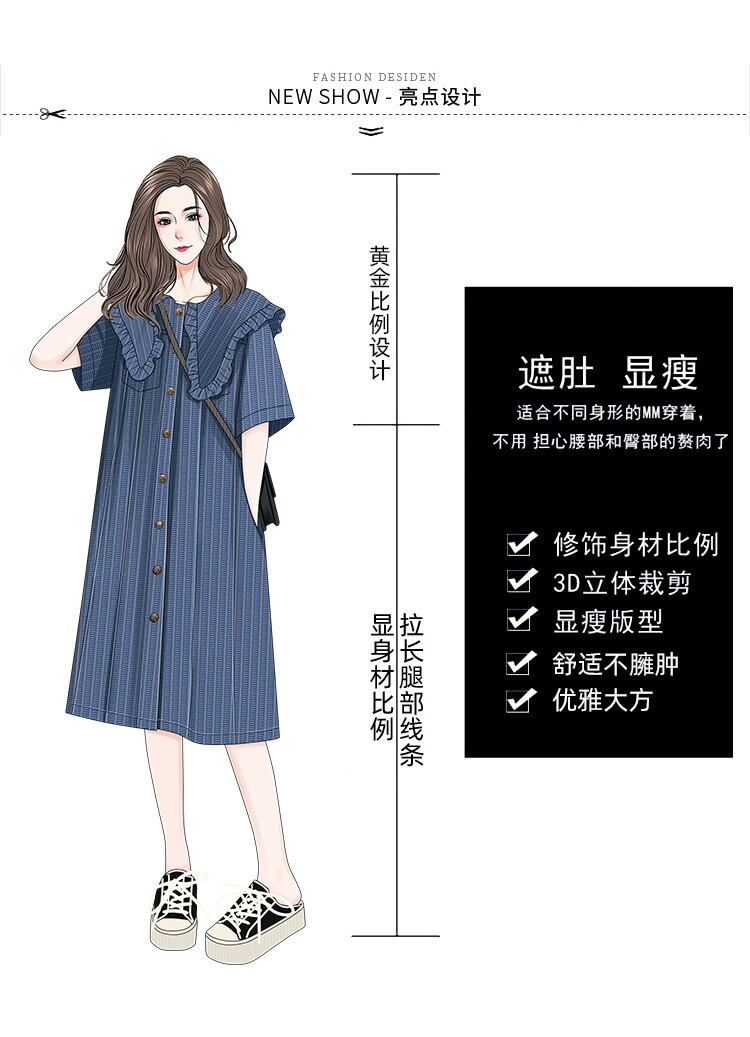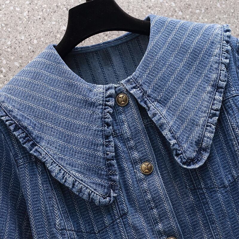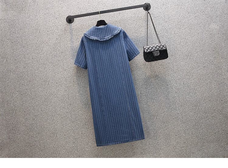 プラスサイズの婦人服 2023 夏服ファットシスターデザインセンス大きなラペルデニムスカートシングルブレストボタンストレートスリムドレス 大きめサイズ サマー 夏物 8884119572797656