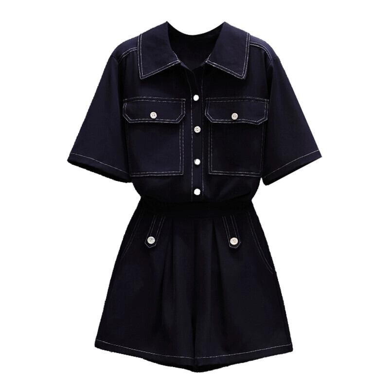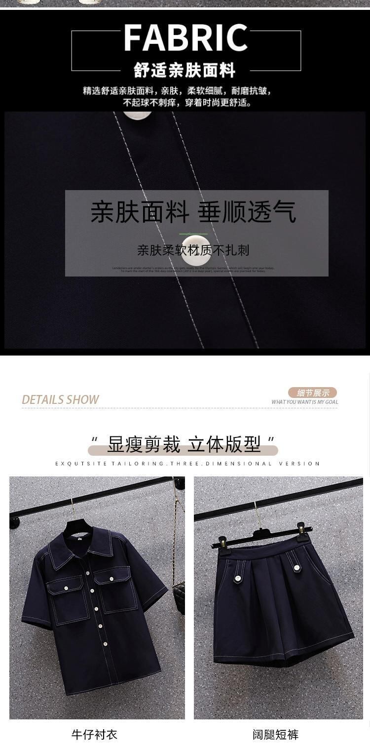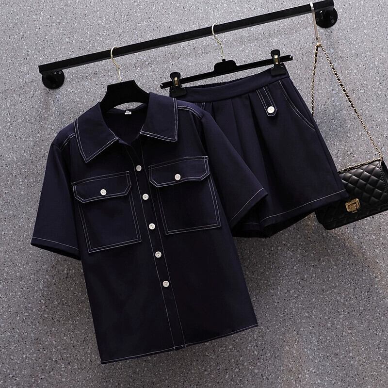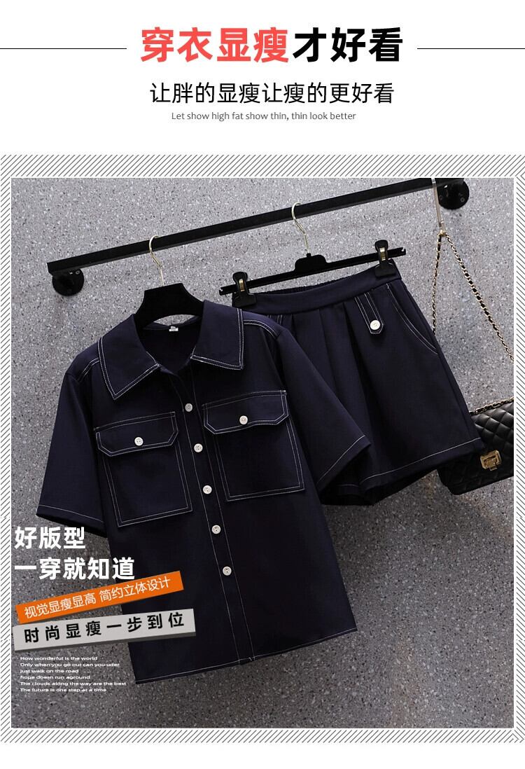 プラスサイズの婦人服 2023 脂肪姉妹夏の新ファッションスーツ半袖シャツハイウエストショーツ気質ツーピーススーツ ハイウェスト 大きめサイズ サマー 夏物 ブルマー 8884151915906805
