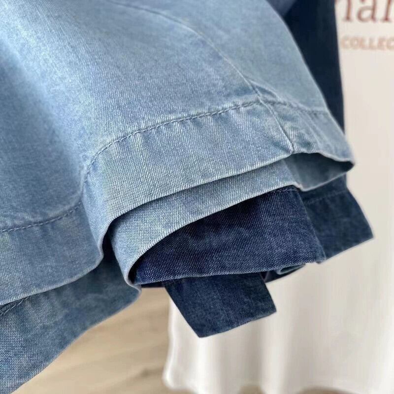プラスサイズの婦人服 2023 トレンド夏新ファットシスターファッション年齢を軽減するデニムショートパンツハイウエストウエスタンスタイル 5 点ワイドレッグパンツ ハイウェスト 大きめサイズ サマー 夏物 ショーツ ブルマー 8884197227673010