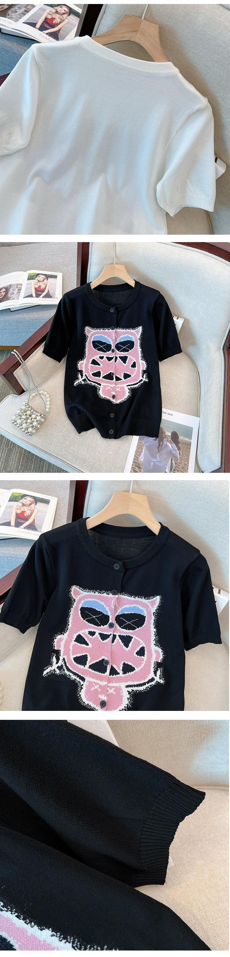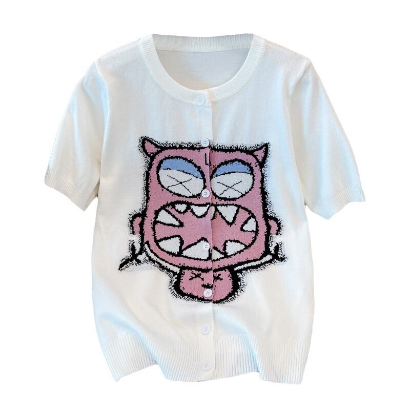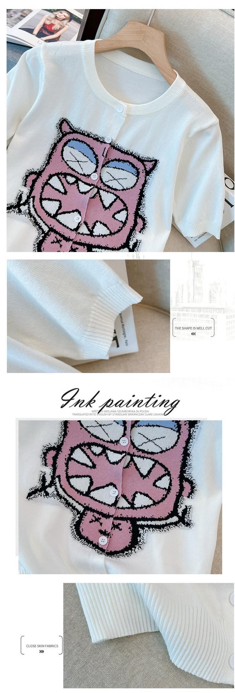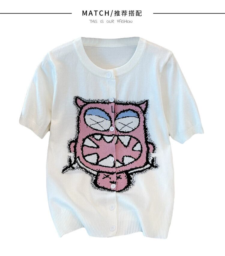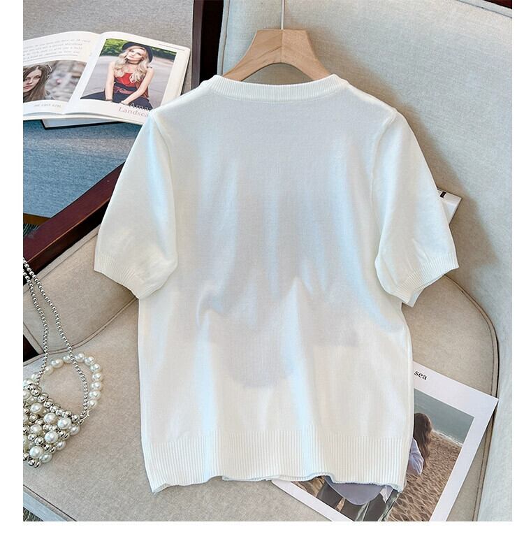 プラスサイズの婦人服 2023 流行の夏の新しいファットシスターオールマッチニット薄い T シャツ年齢軽減カーディガン半袖トップ 大きめサイズ サマー 夏物 Tシャツ 8884146073915774