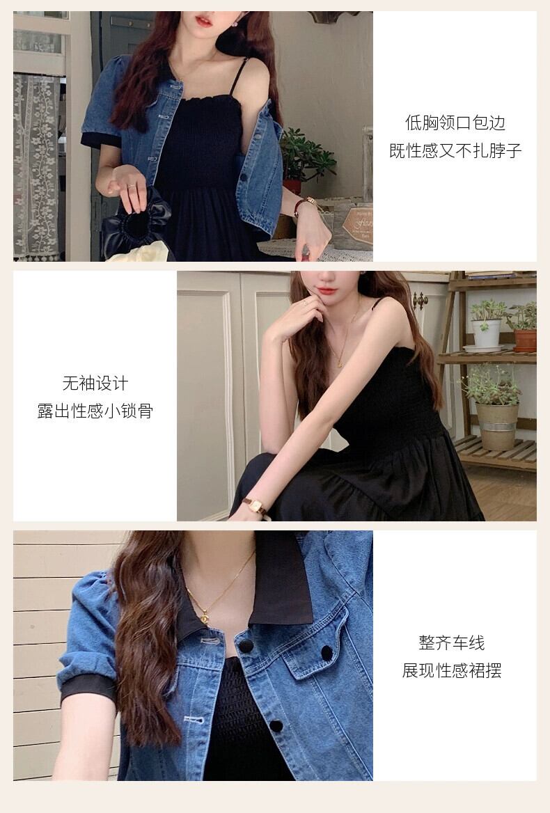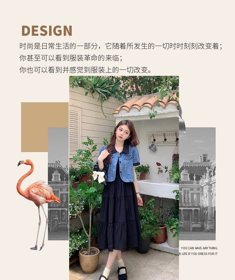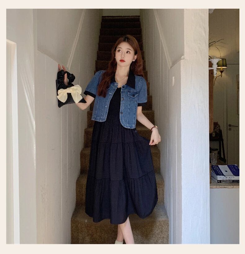 プラスサイズの婦人服 2023 夏服ファットシスターファッション半袖デニムトップデザインセンスサスペンダードレス 2 点セット 大きめサイズ サマー 夏物 8884135955182051