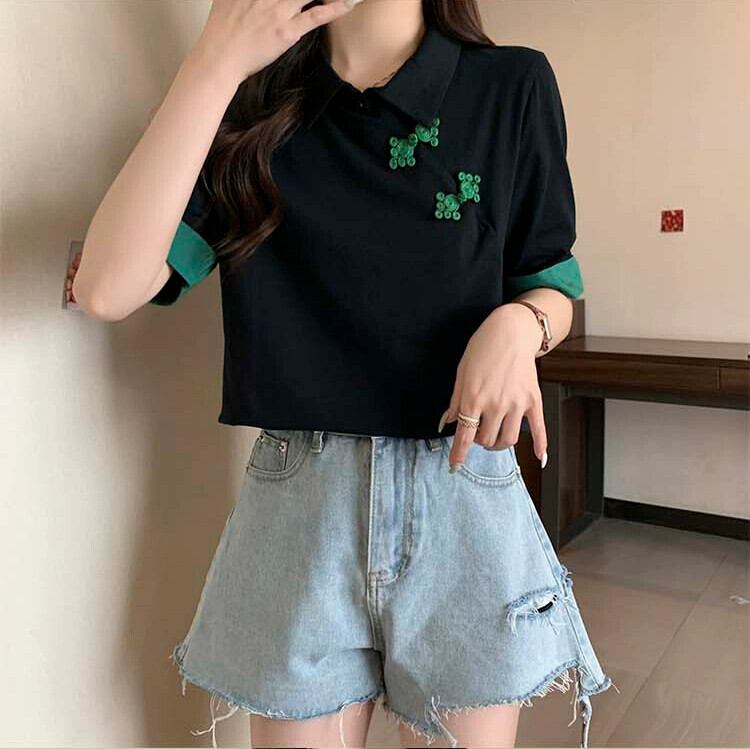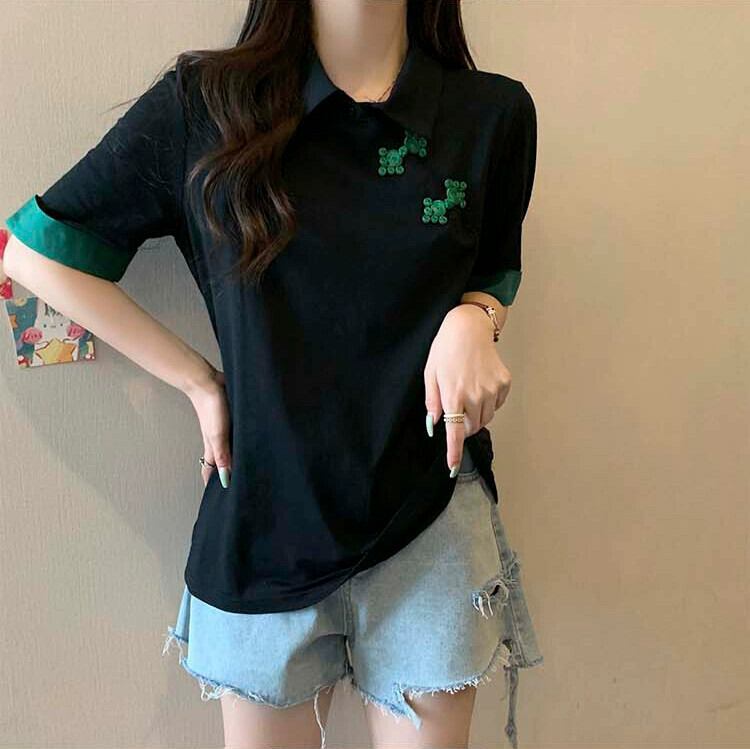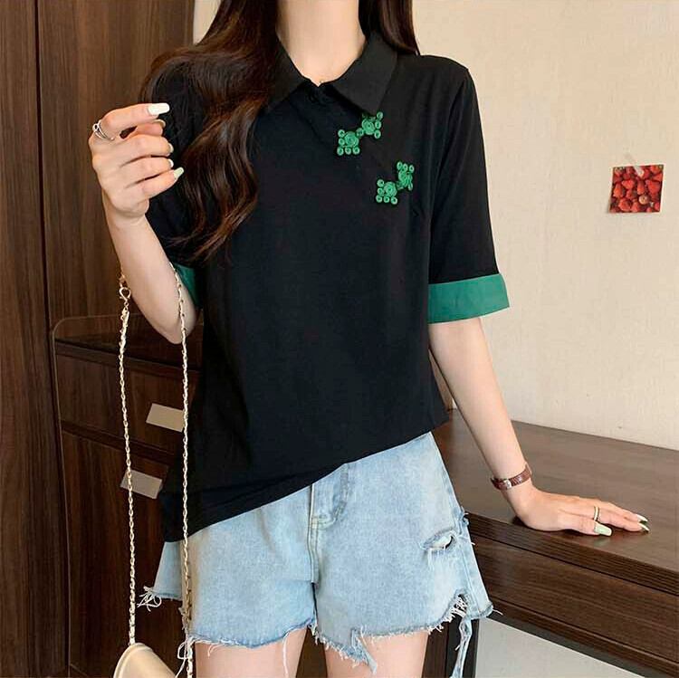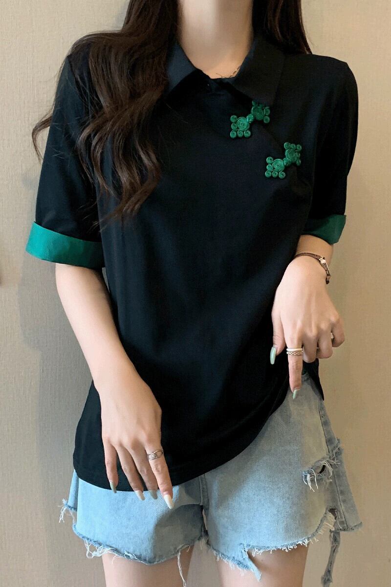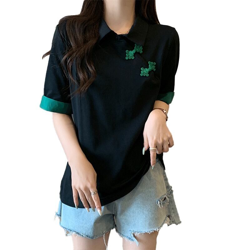 プラスサイズの婦人服 2023 夏服ファットシスターファッションカジュアルオールマッチ中国風国家スタイルバックル tシャツデザイントップス 大きめサイズ サマー 夏物 8884122110280750