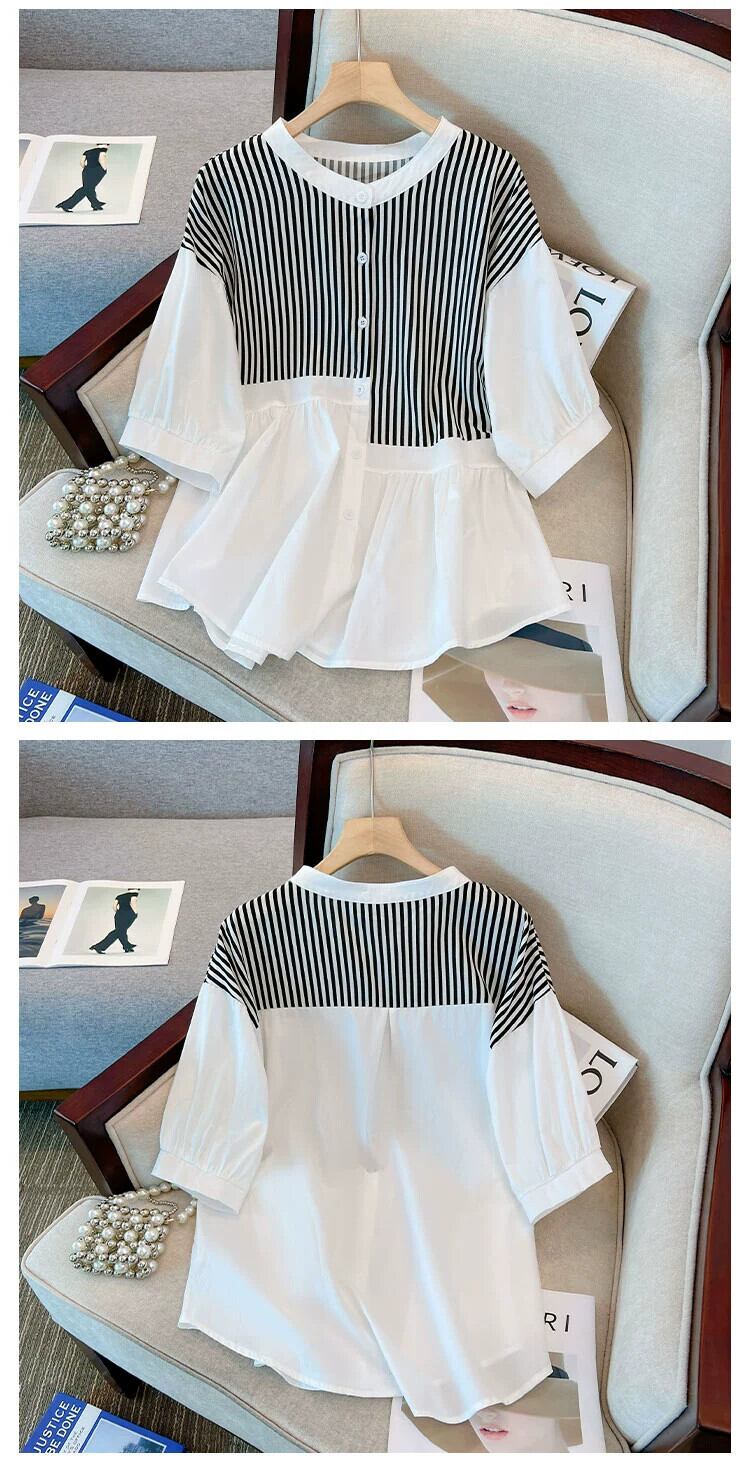 プラスサイズの婦人服 2023 夏服太った妹は薄いスプライシングルーズ偽ツーピースシャツ年齢を減らすカジュアル半袖トップに見えます 大きめサイズ サマー 夏物 8884132445400778