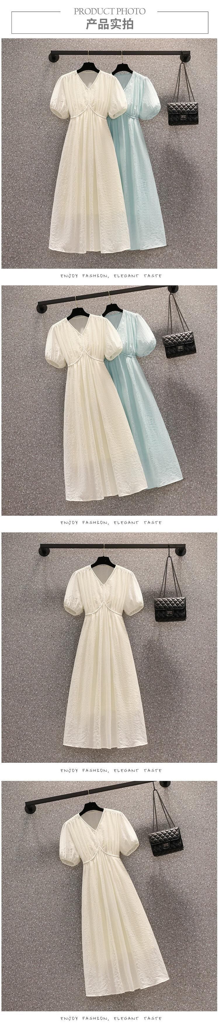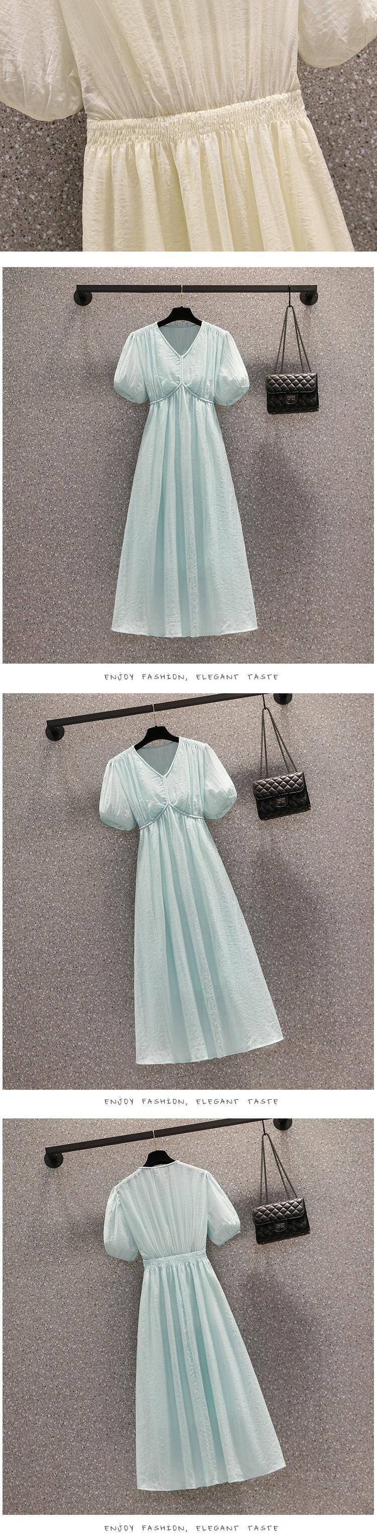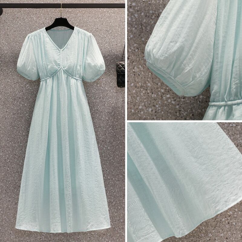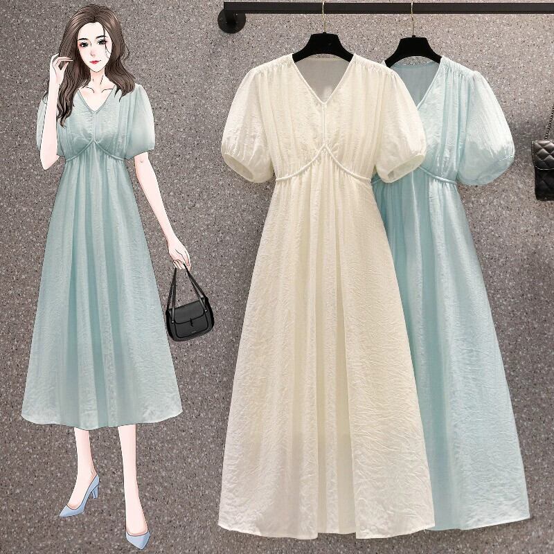 プラスサイズの婦人服 2023 流行の夏の新しいファットシスターファッションスリム V ネックミドル丈スカート気質ハイエンドドレス 大きめサイズ サマー 夏物 Vネック 8884135002947310