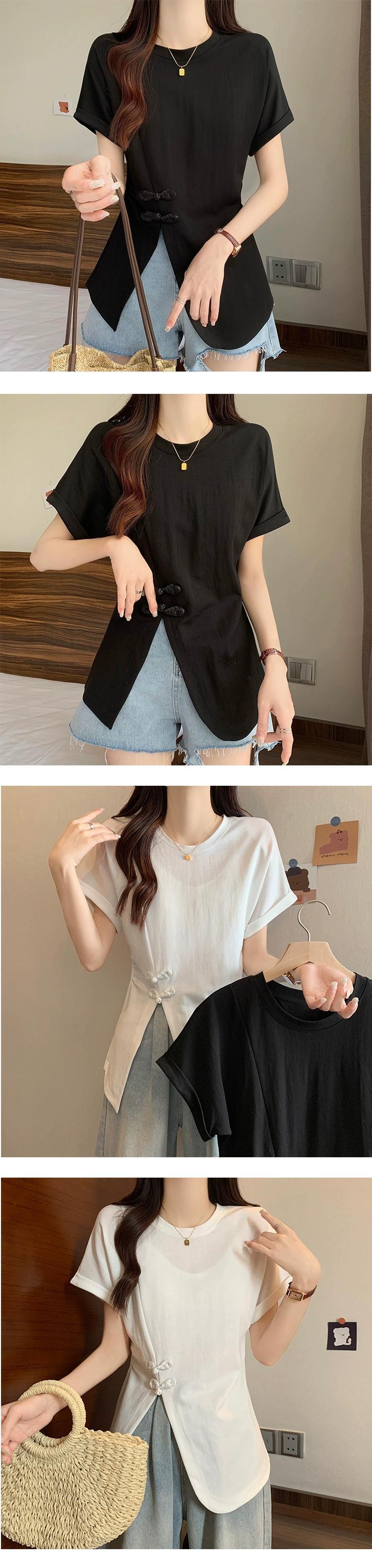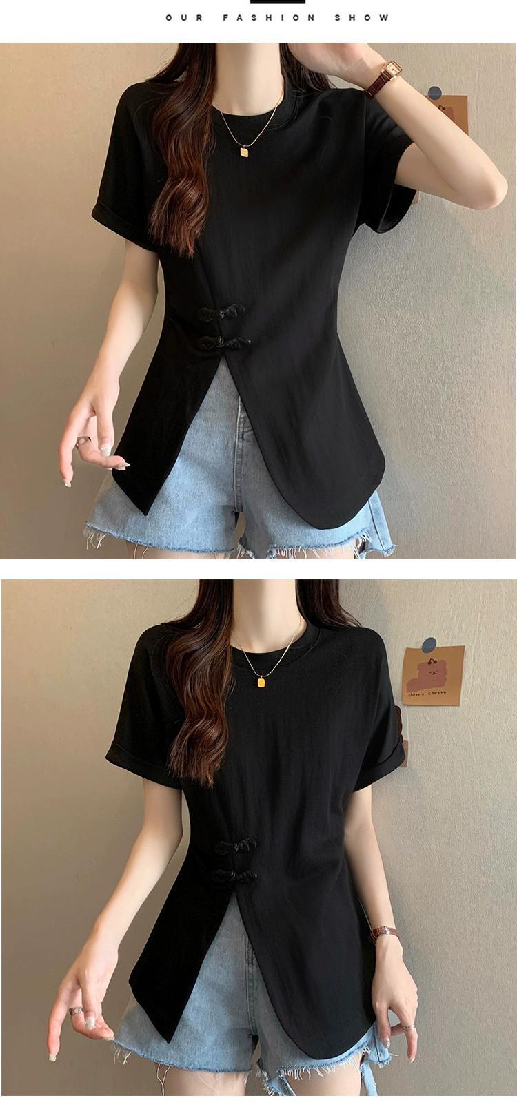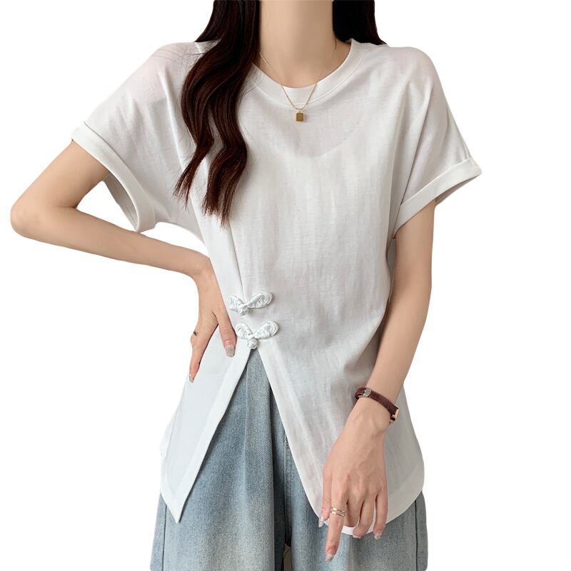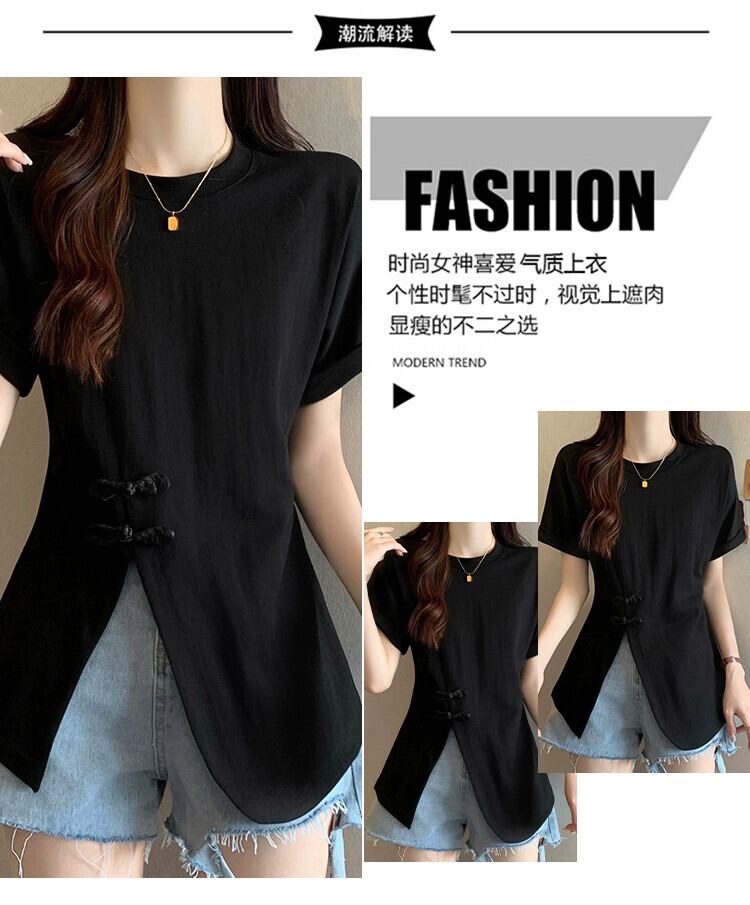 大きいサイズの婦人服 2023 夏服、太った姉妹、不規則な T シャツ、スリット、半袖、シックなデザインのトップス ショート ハーフスリーブ 大きめサイズ サマー 夏物 Tシャツ 8884190333519737