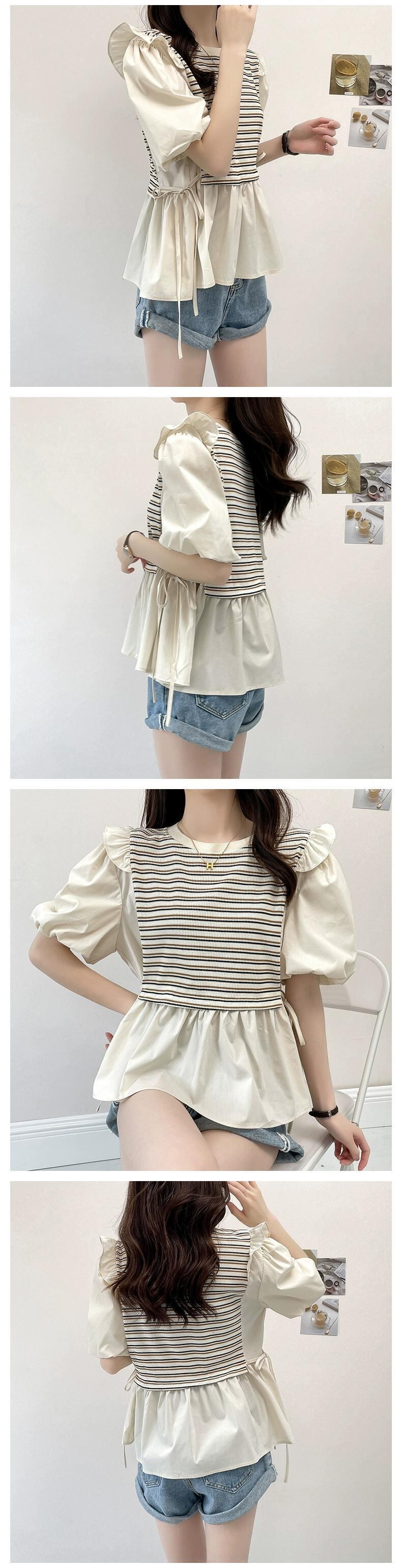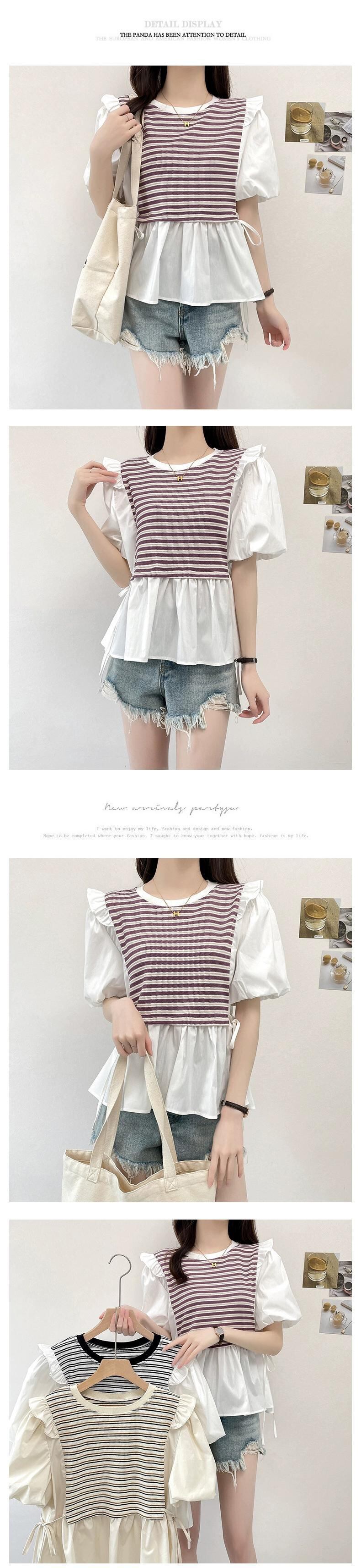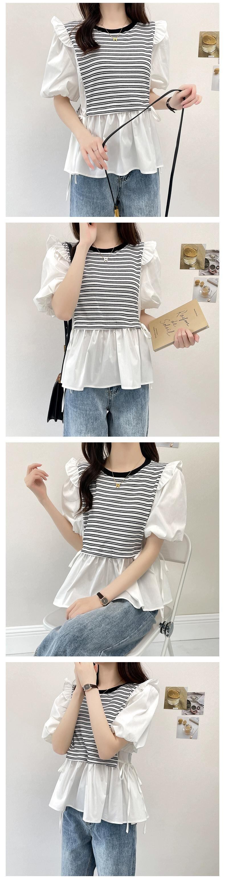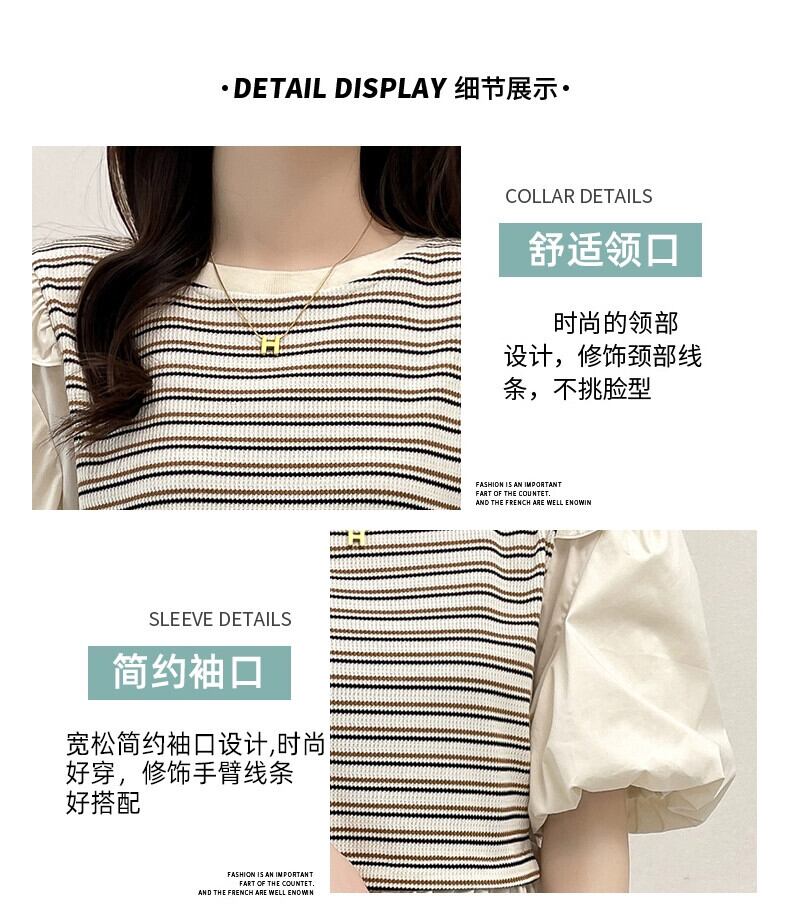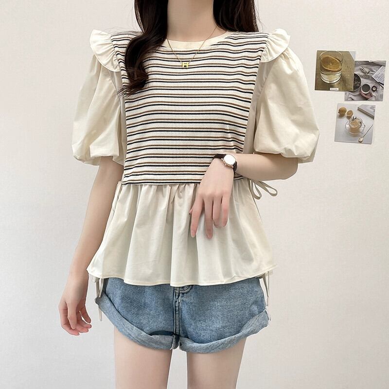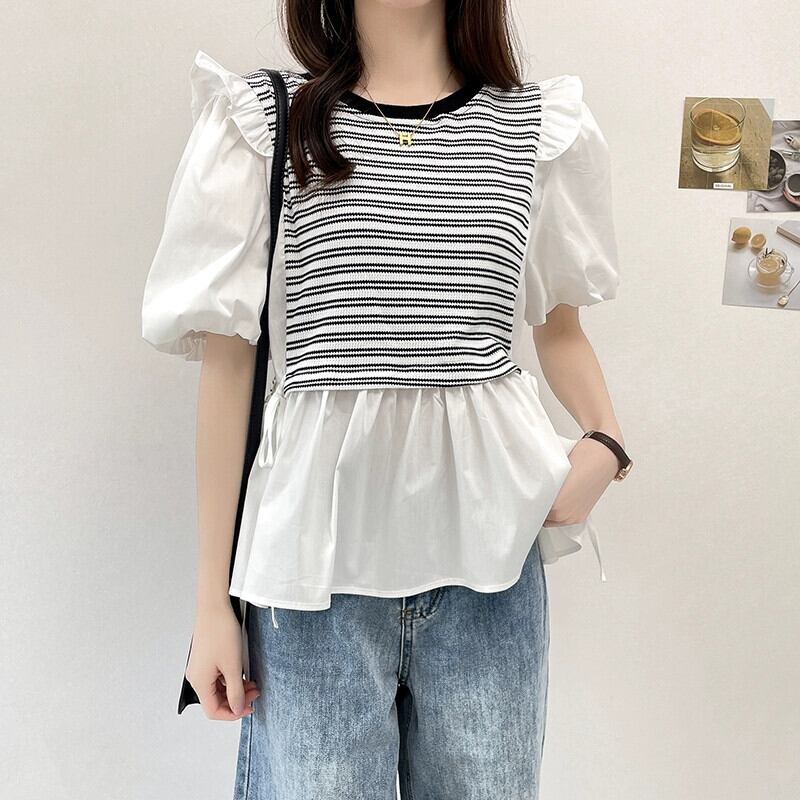 プラスサイズの婦人服 2023 脂肪姉妹夏の新しいファッション年齢低減と薄い個性ストライプステッチシャツ半袖トップ 大きめサイズ サマー 夏物 8884119536628198