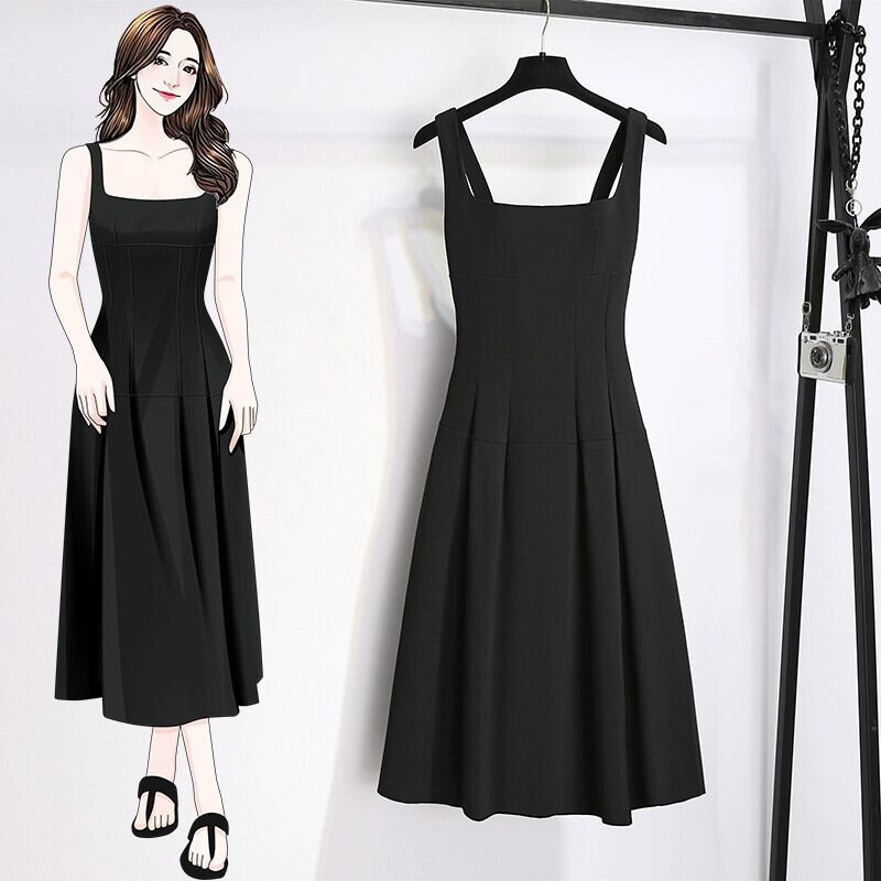 プラスサイズの婦人服 2023 夏服ファットシスターヘップバーンスタイルサスペンダースカート痩身ハイレベルなお腹カバードレス 大きめサイズ サマー 夏物 8884129906242443