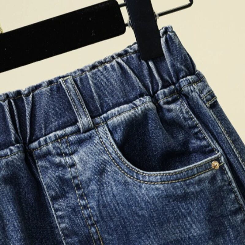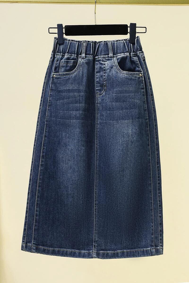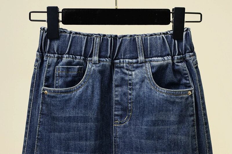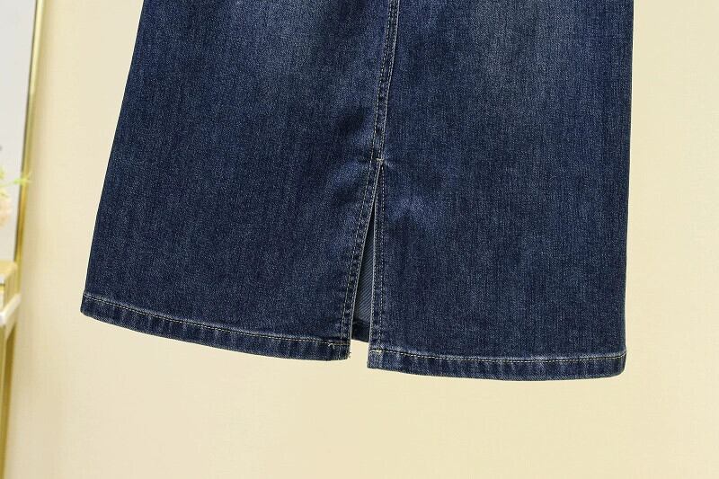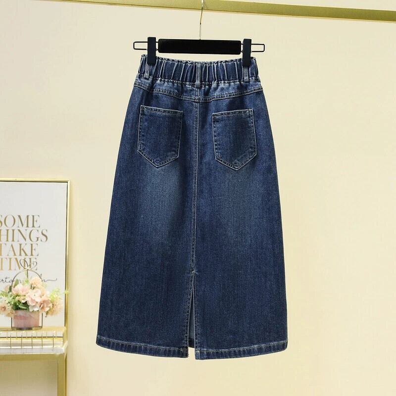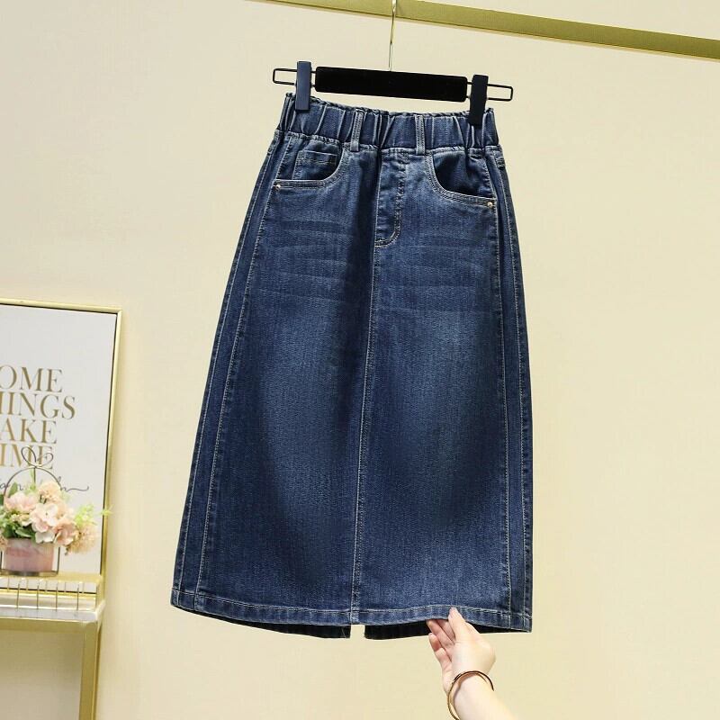 プラスサイズの婦人服 2023 夏服脂肪姉妹スリットミッドレングススカート弾性ハイウエスト痩身 a ラインデニムスカート ハイウェスト エラスティック 伸縮 大きめサイズ サマー 夏物 Aライン 8884162341018292
