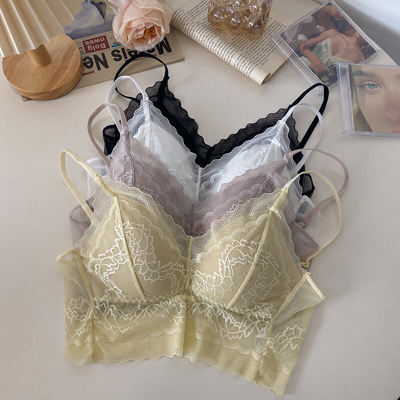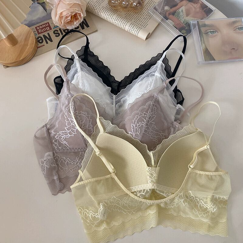 プラスサイズの婦人服 2023 脂肪姉妹夏の新しいレースの美しいバックメッシュ薄い固定カップギャザー下着サスペンダー レッド 大きめサイズ サマー 夏物 8884137286388668