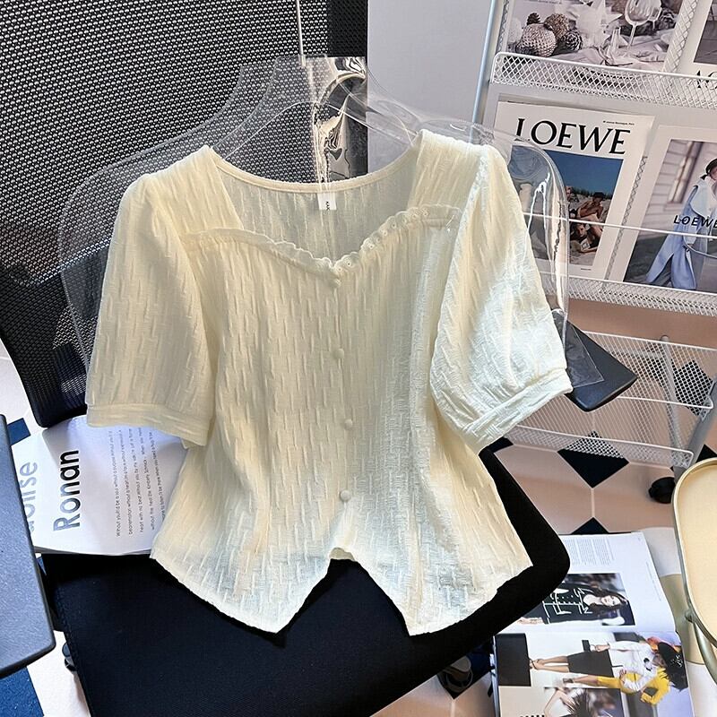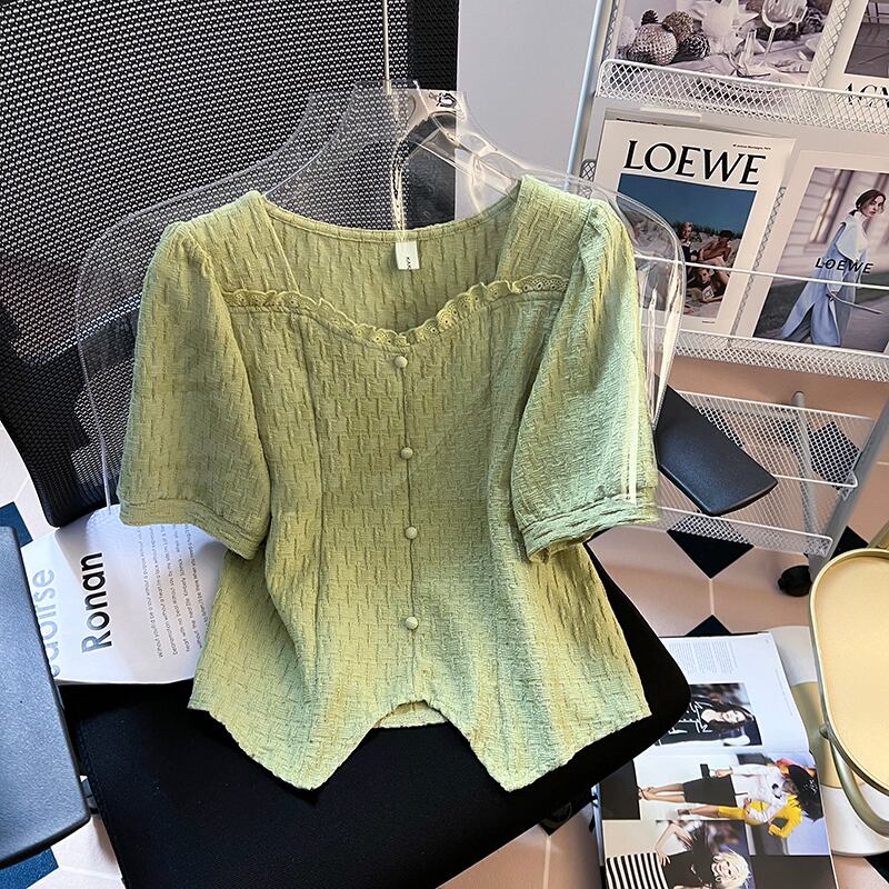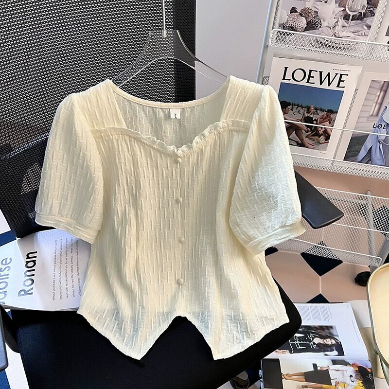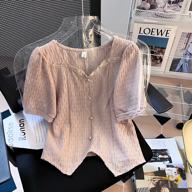 プラスサイズの婦人服 2023 夏ドレスファットシスターフレンチシフォンシャツシックなスリムオールマッチ気質トップ半袖 T シャツ 大きめサイズ サマー 夏物 Tシャツ 8884144389074520