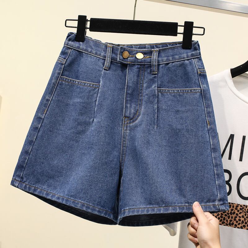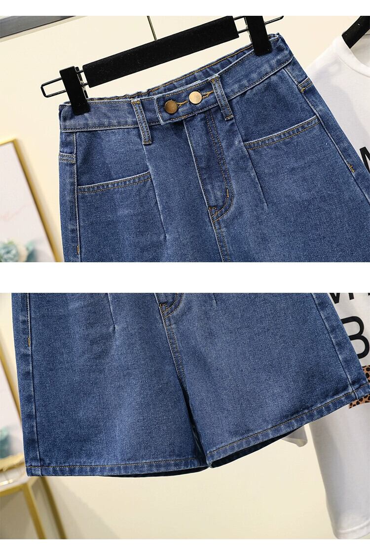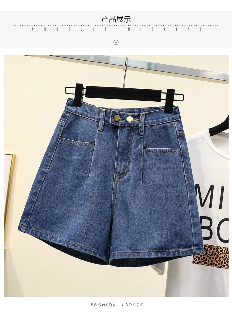 プラスサイズの婦人服 2023 流行の夏の新しいファットシスター A ラインワイドレッグデニムショートパンツハイエンドカジュアルパンツ 大きめサイズ サマー 夏物 ショーツ ブルマー Aライン 8884146282175907
