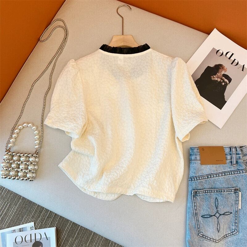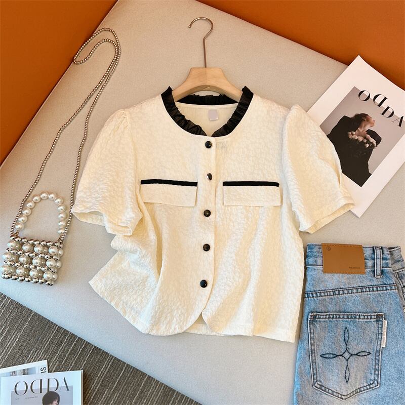 プラスサイズの婦人服 2023 ファットシスター夏の新しいデザインセンスニッチシックなシャツファッションシングルブレストボタンヒットカラートップ 大きめサイズ サマー 夏物 8884155175142609