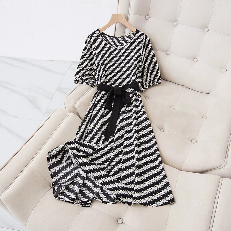 プラスサイズの婦人服 2023 流行の夏の新しい脂肪姉妹気質薄いストライプのドレスファッション年齢を減らすストラップドレス 大きめサイズ サマー 夏物 8884171855764407