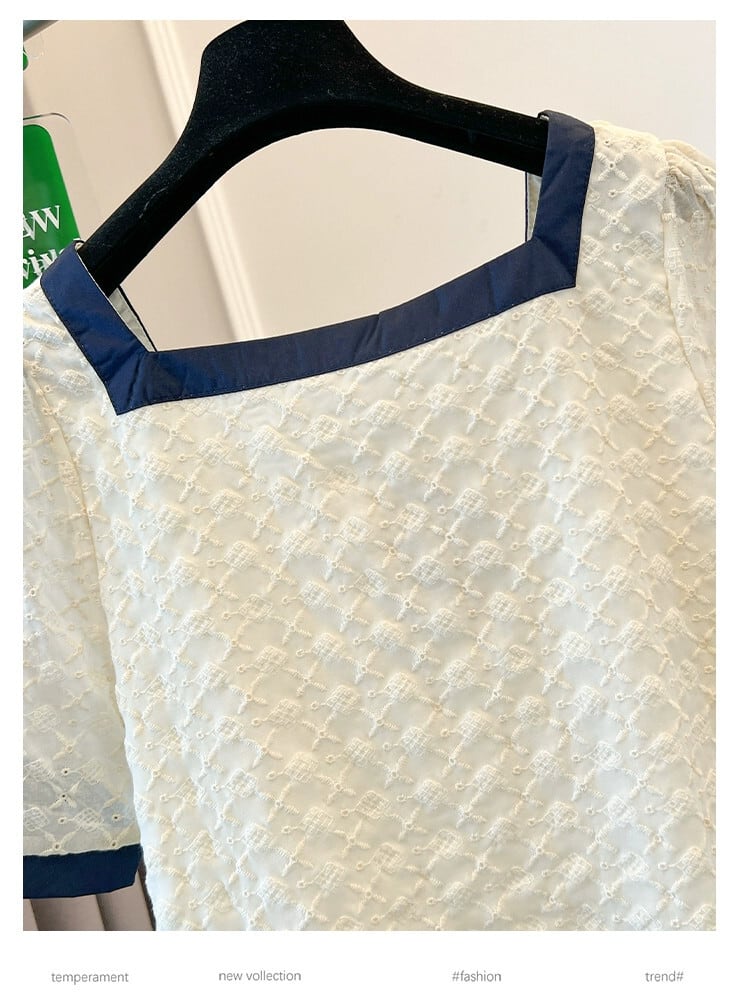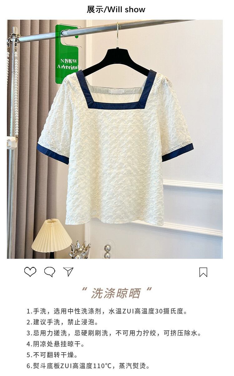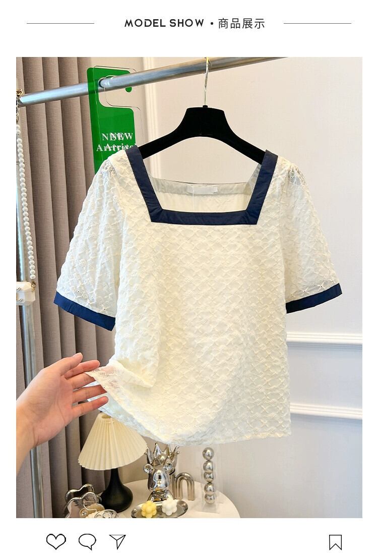 プラスサイズの婦人服 2023 流行の夏の新しい脂肪姉妹バージョンルーズバブルシャツ刺繍スクエアカラー鎖骨トップ 大きめサイズ サマー 夏物 スクウェア 8884176069692382