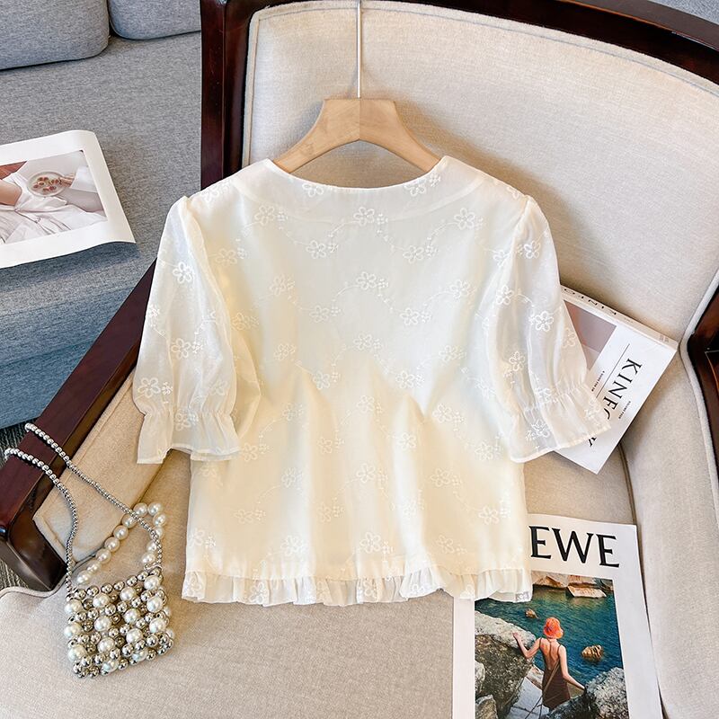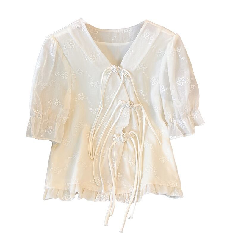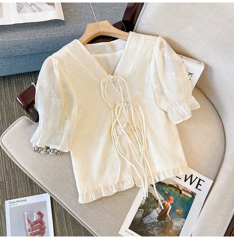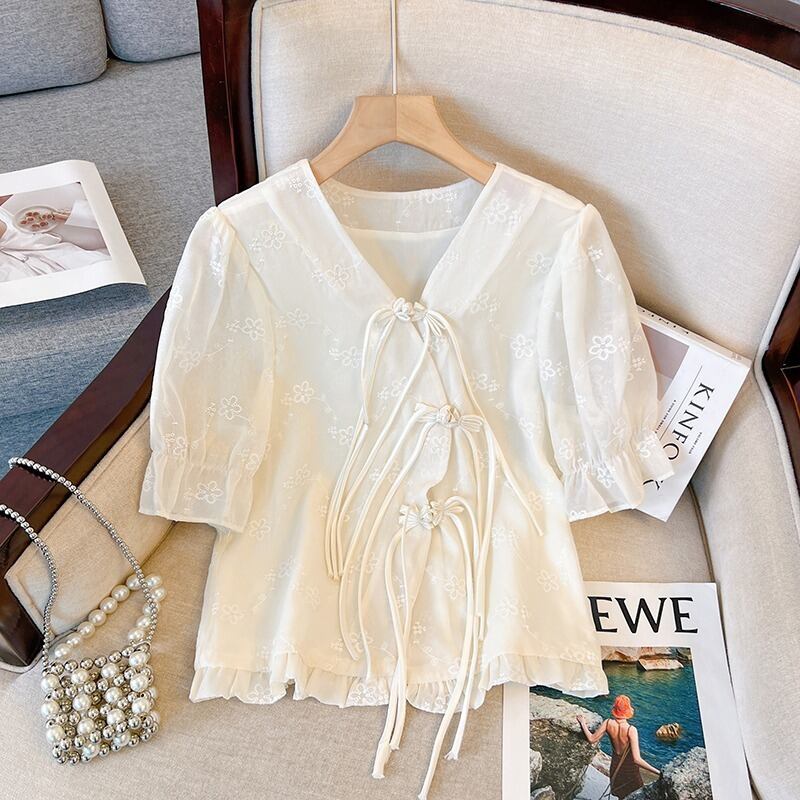 プラスサイズの婦人服 2023 トレンディな夏の新しいファットシスター中国風のバックルの新しい中国風のトップとスリムで薄いシャツ 大きめサイズ サマー 夏物 8884133095824000