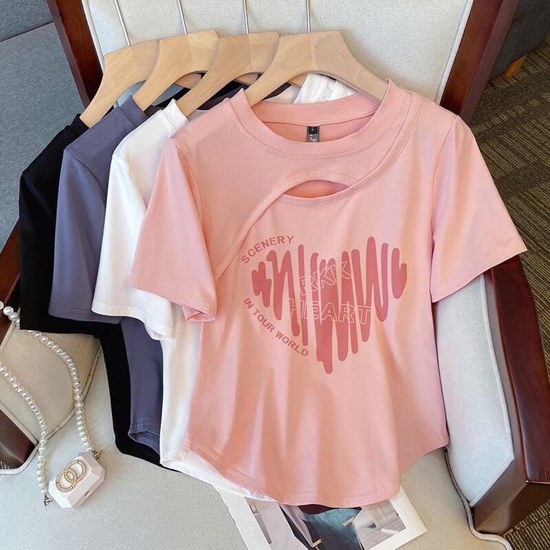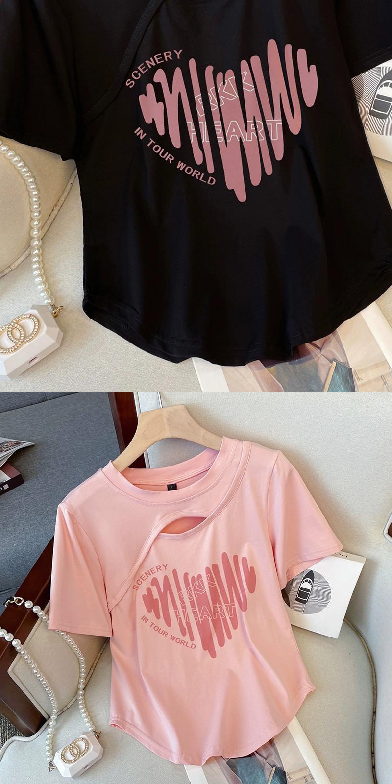 プラスサイズの婦人服太った妹の夏服デザイン感薄い半袖Tシャツ太mmお腹カバーファッショナブルなカジュアルショートトップ 大きめサイズ サマー 夏物 8884144384059519
