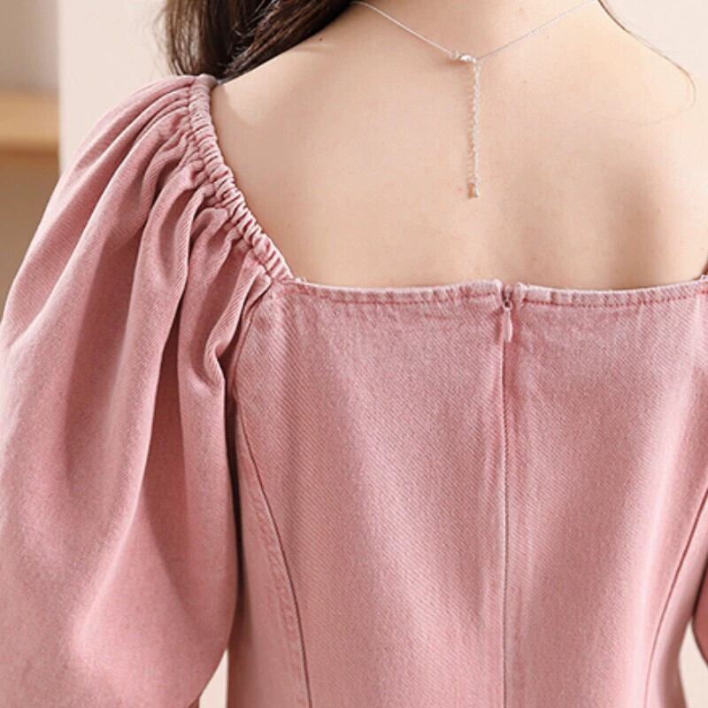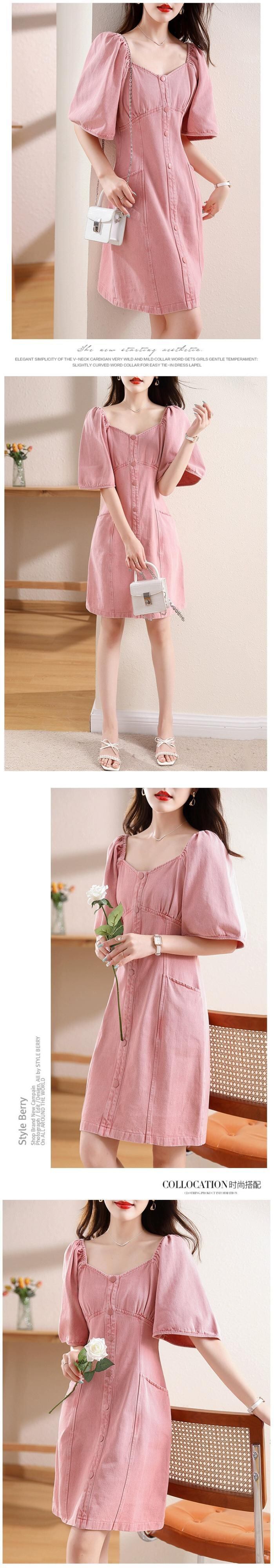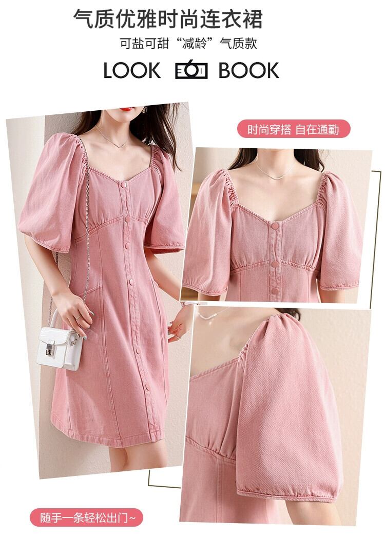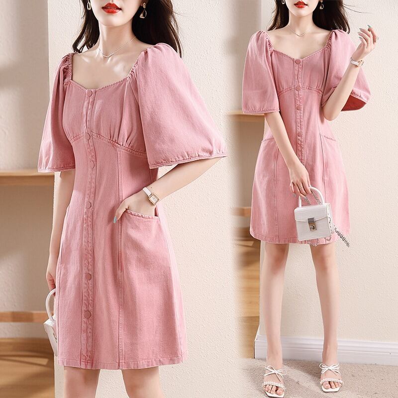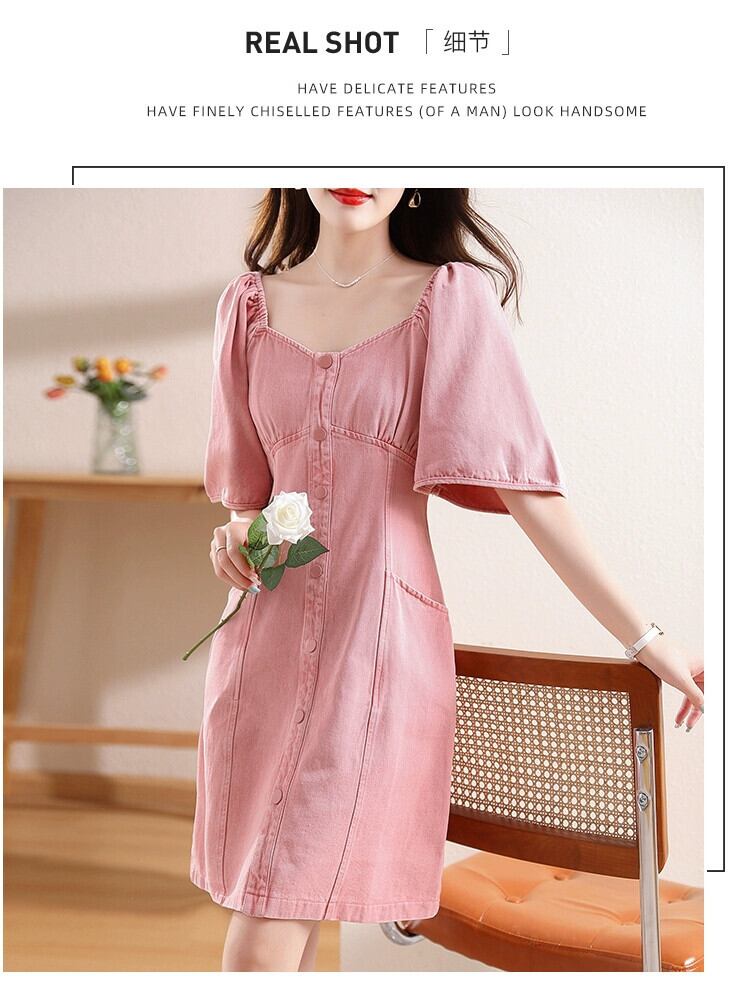 プラスサイズの婦人服 2023 トレンディな夏の新しい脂肪姉妹は甘くてしょっぱいフレンチスカート eign スタイル無地デニムドレス 大きめサイズ 大人ガーリー スウィート キュート カジュアル サマー 夏物 ソリッドカラー 8884116791400482