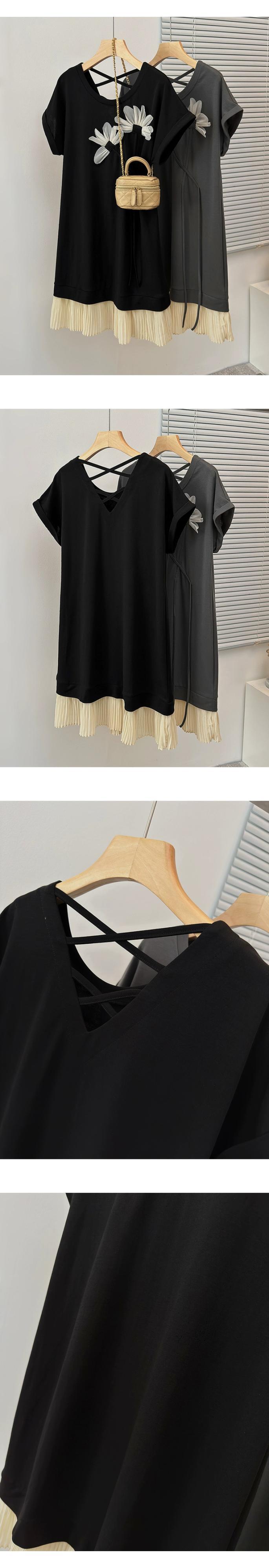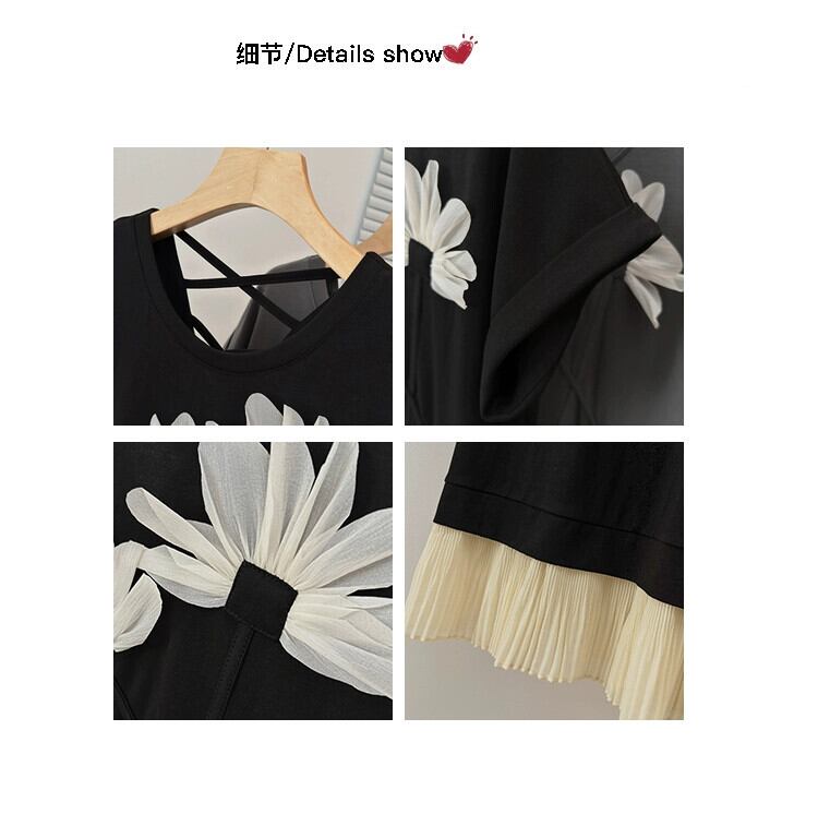 プラスサイズの婦人服 2023 脂肪姉妹夏の新ファッションカジュアル tシャツスカート年齢軽減ルーズロールスリーブドレス 大きめサイズ サマー 夏物 8884135046450376