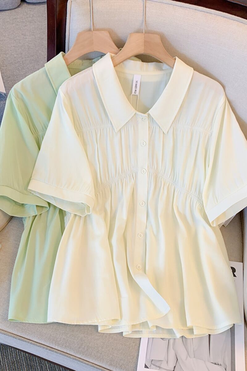 プラスサイズの婦人服ファットシスター夏ルーズシフォンフロントショルダー半袖シャツ痩身 A ライン腹カバートップ 大きめサイズ サマー 夏物 Aライン 8884143627624364