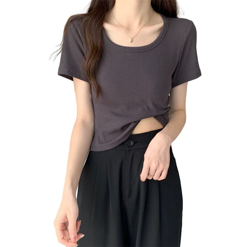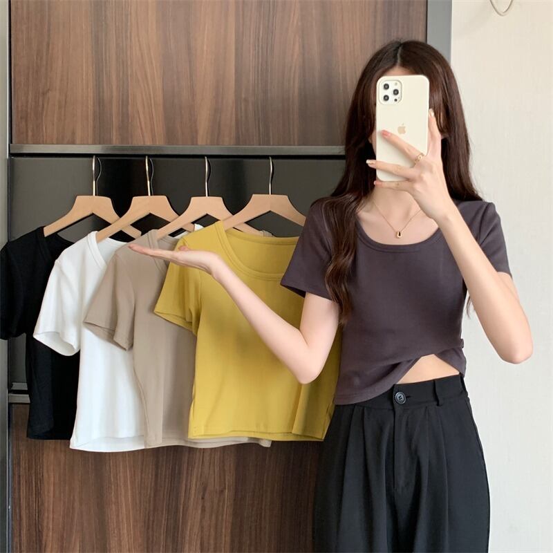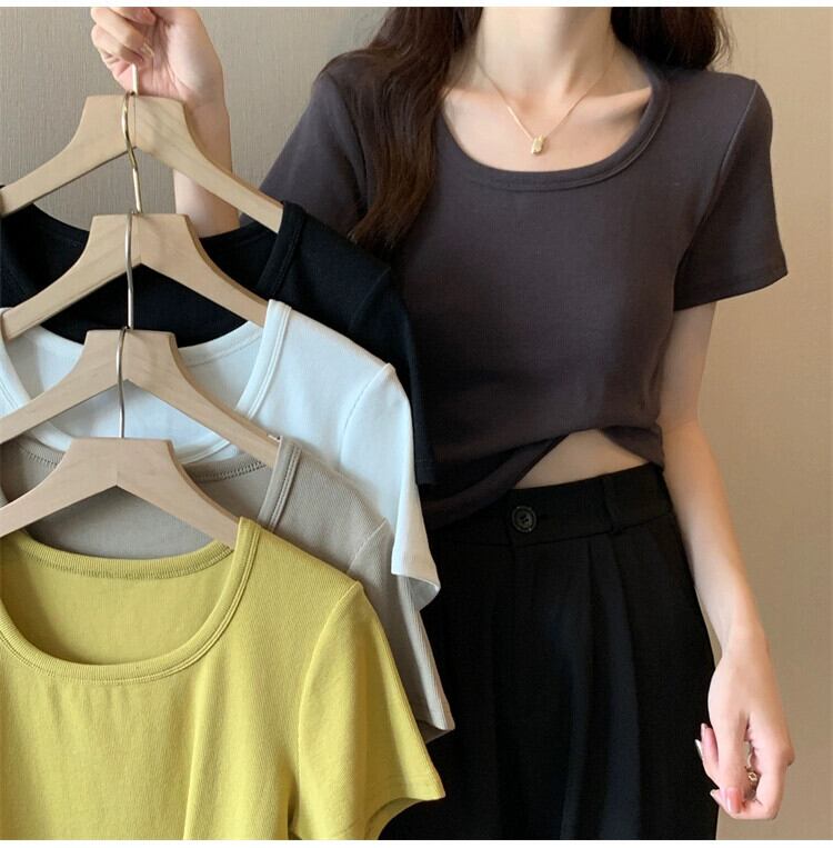 プラスサイズの婦人服 2023 潮夏新しいファットシスターオールマッチ薄いトップスオールマッチ糸無地半袖 T シャツ 大きめサイズ サマー 夏物 Tシャツ ソリッドカラー 8884131939185122