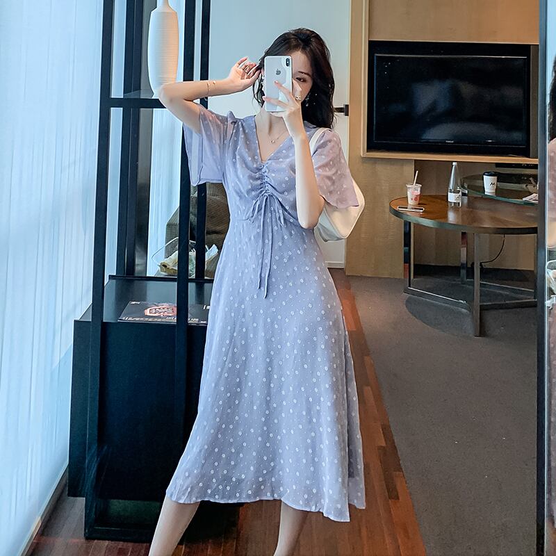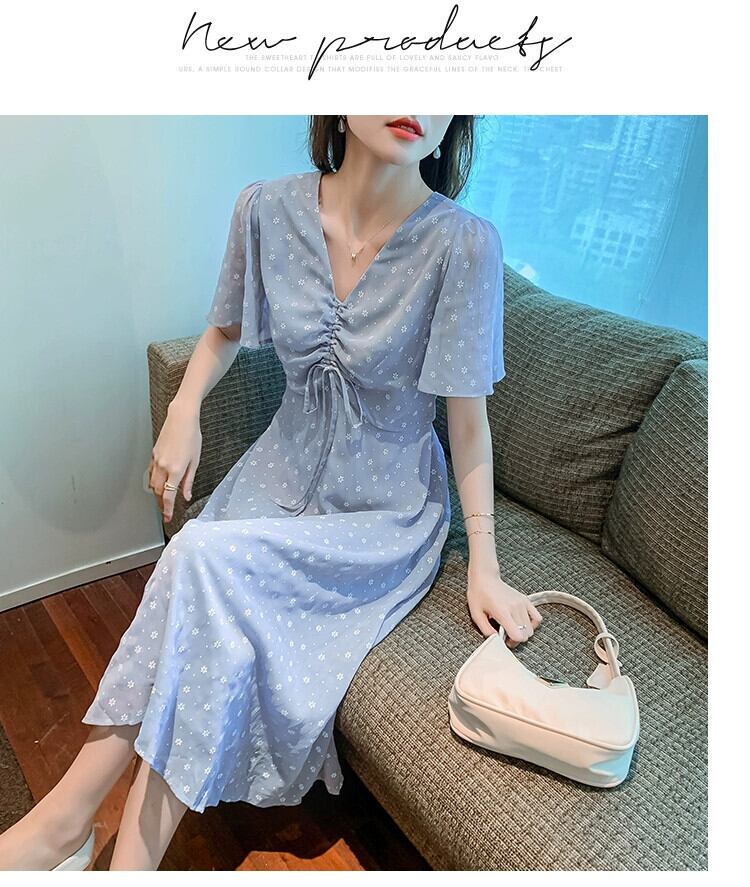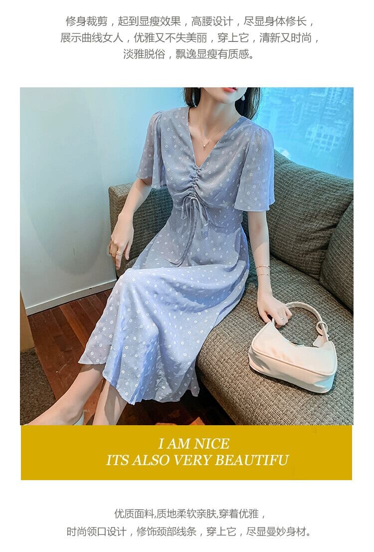 プラスサイズの婦人服 2023 夏のドレス脂肪姉妹年齢削減フレンチ V ネック花柄スカートデザインセンスシフォンカジュアルドレス 大きめサイズ サマー 夏物 Vネック 8884150453403291