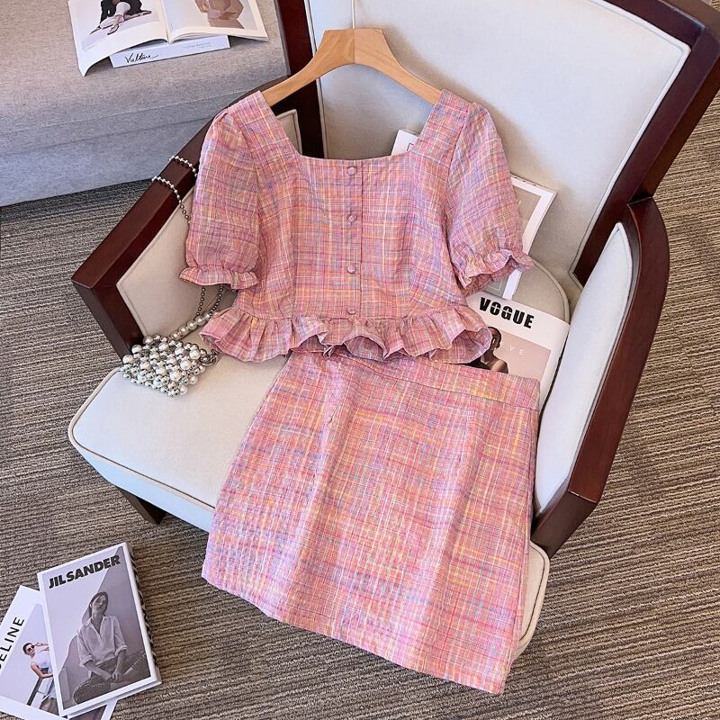 プラスサイズの婦人服 2023 トレンディな夏の新しい太った妹は痩せて見えるオールマッチ スーツ ハイエンド トップ スカート 2 点セット 大きめサイズ サマー 夏物 8884113356824995