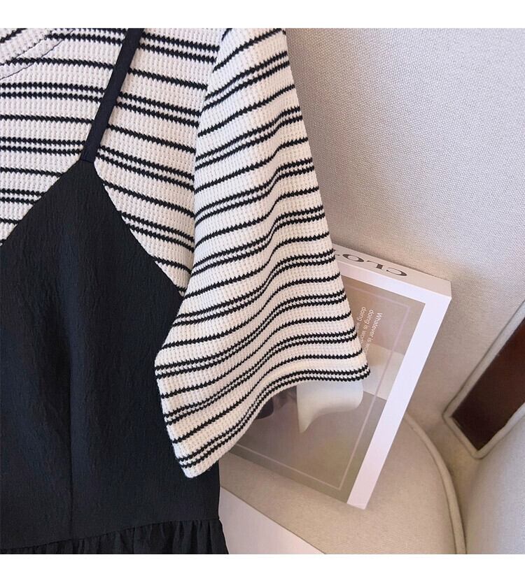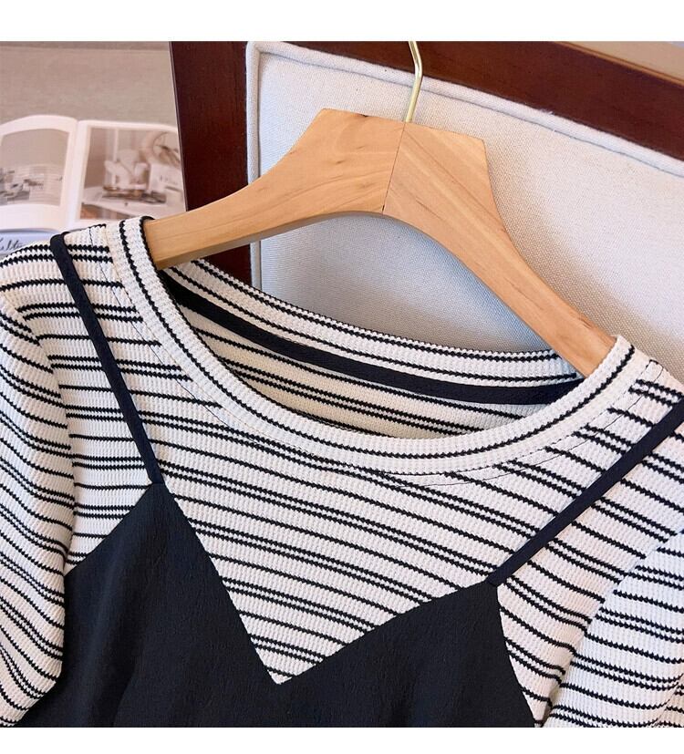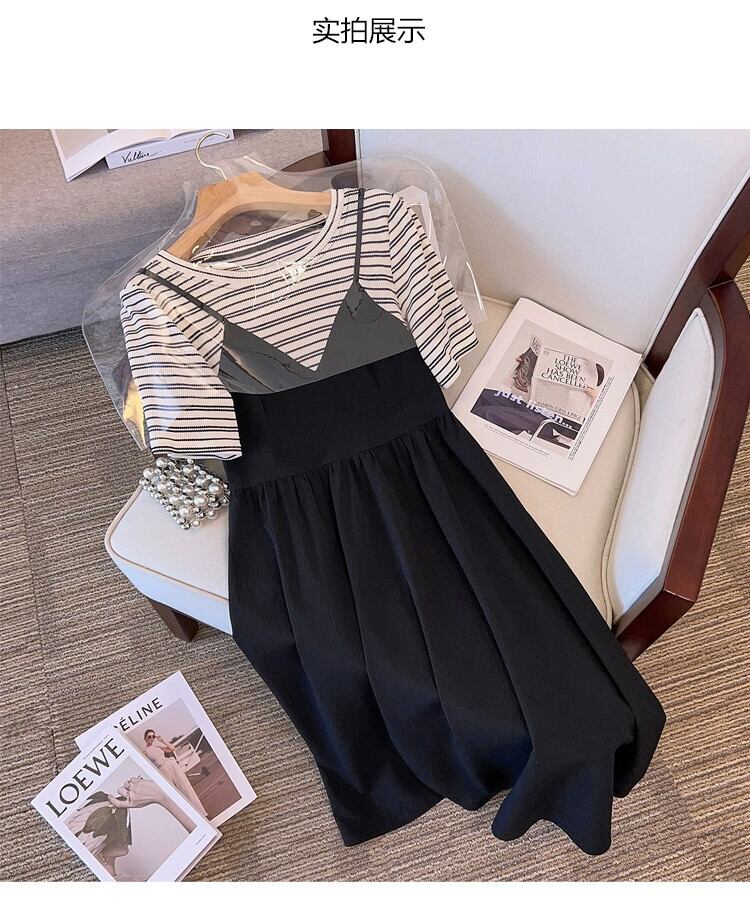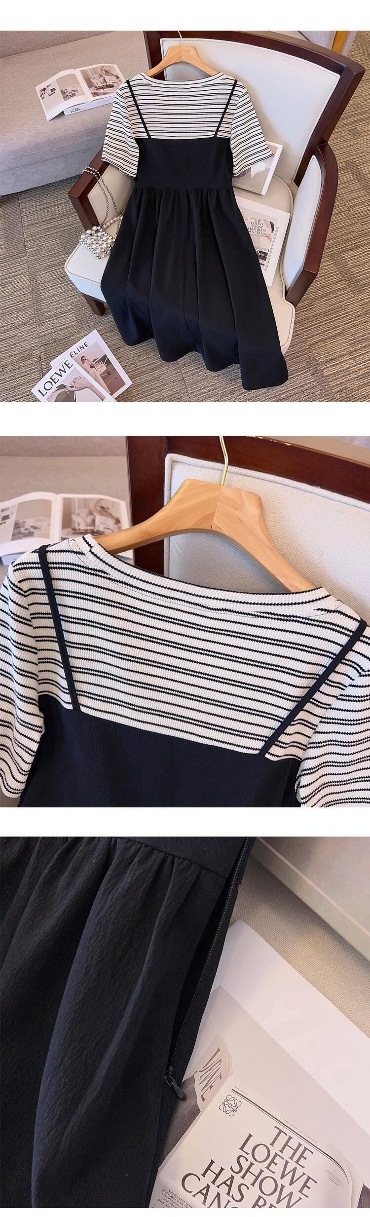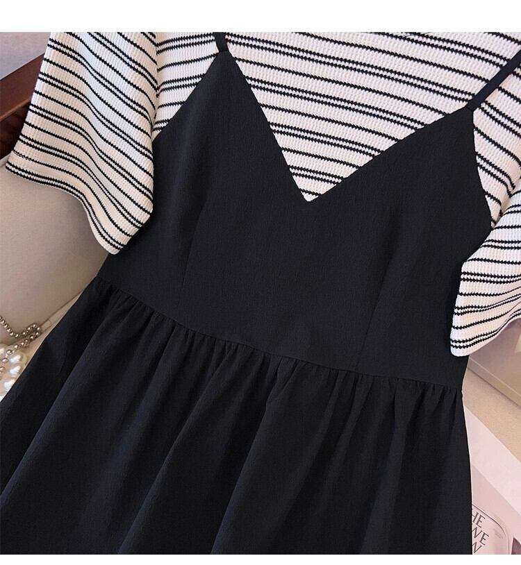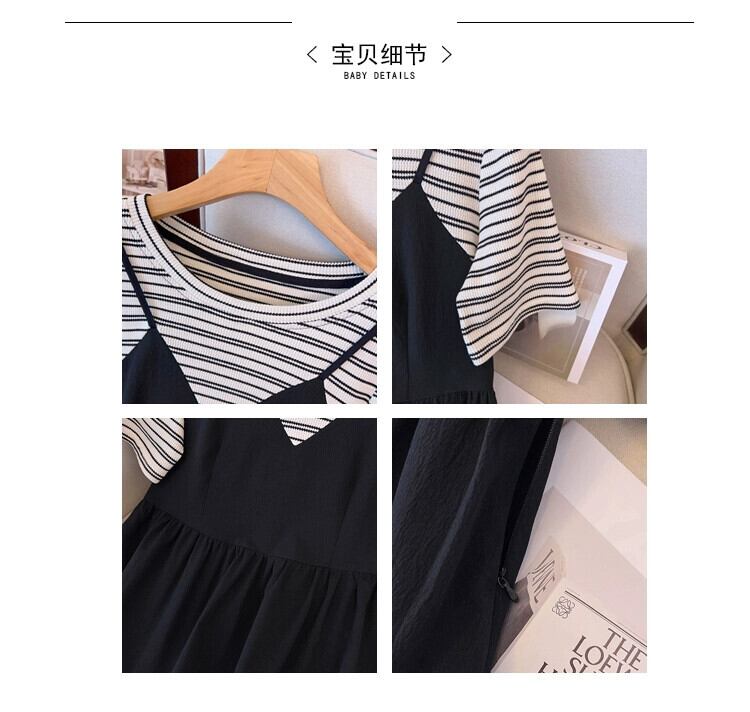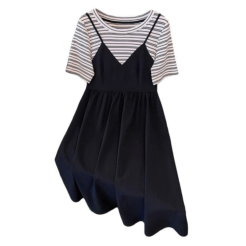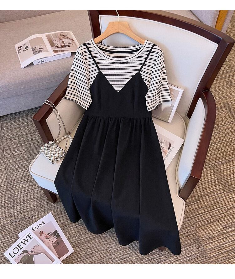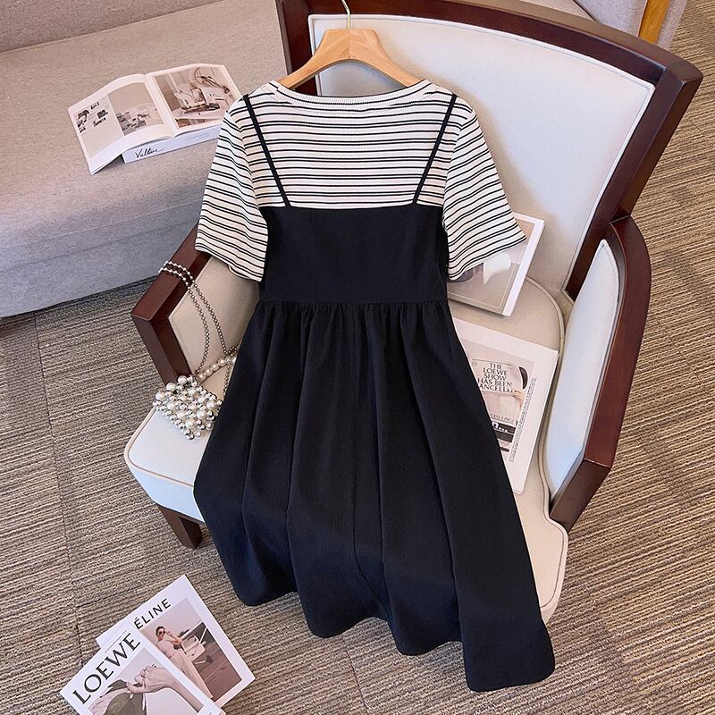 プラスサイズの婦人服 2023 流行の夏の新しいファットシスター eign スタイル年齢軽減フレンチフェイクツーピーススカートデザインセンスドレス 大きめサイズ サマー 夏物 8884142187906387