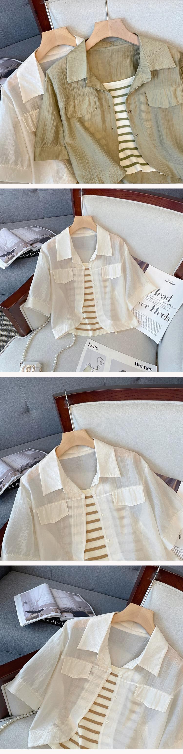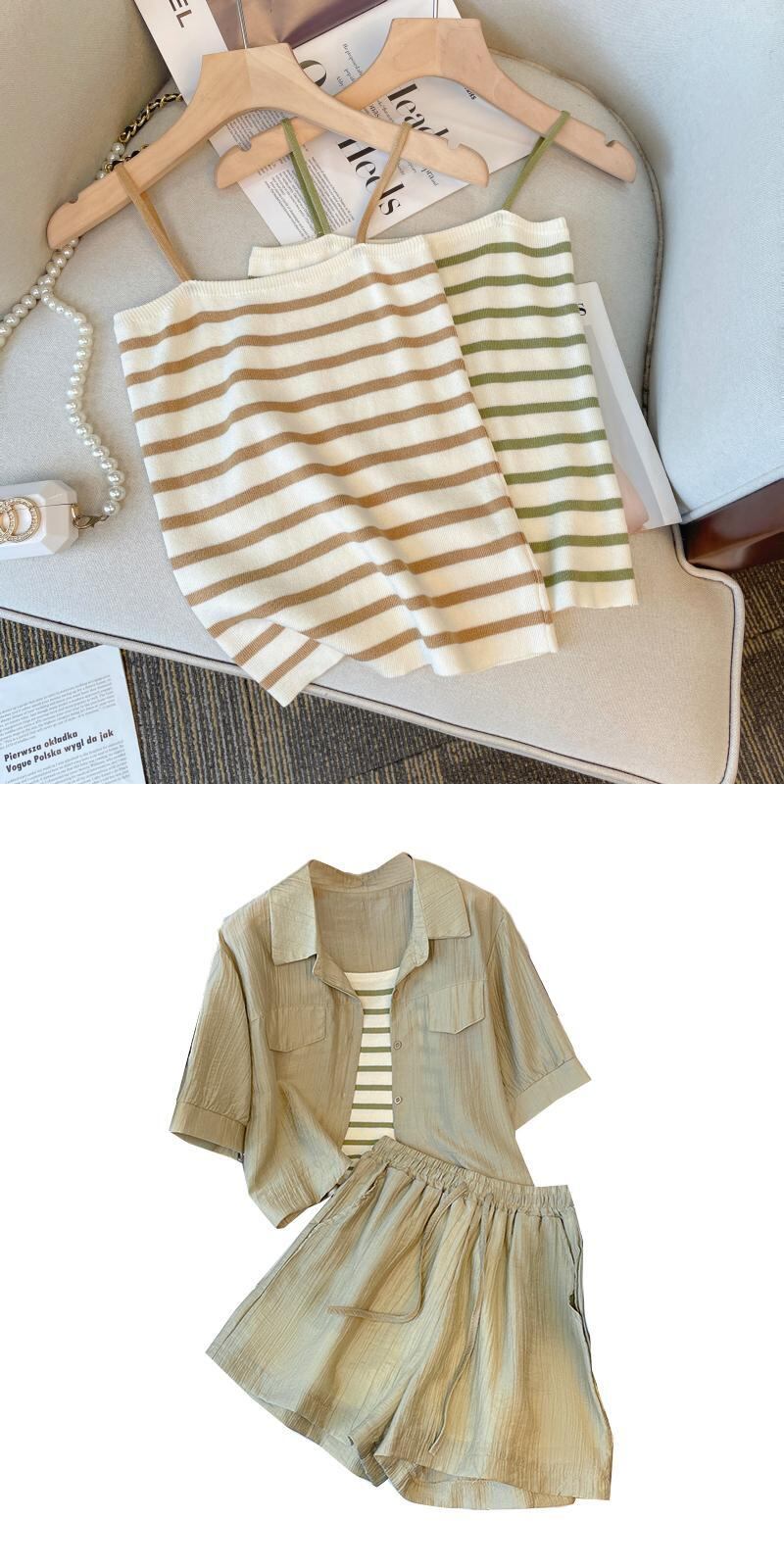 プラスサイズの婦人服 2023 脂肪姉妹夏の新ファッションスーツストライプ底キャミソールシャツ 3 点セット 大きめサイズ サマー 夏物 8884183174533037