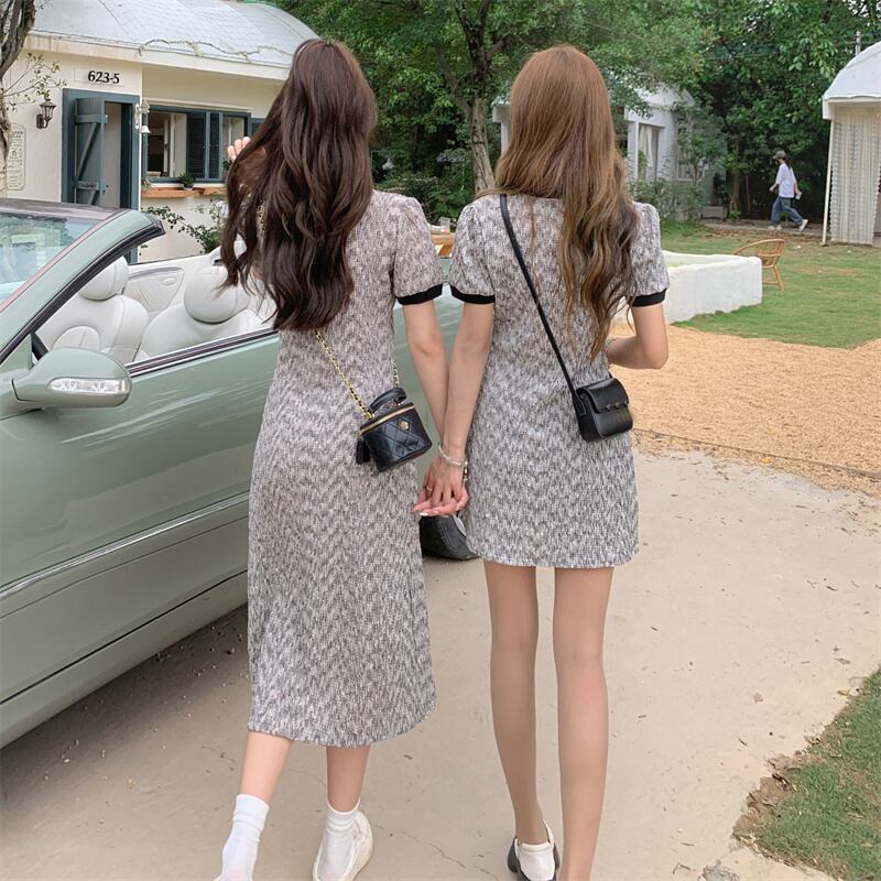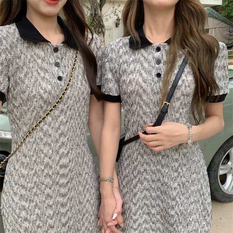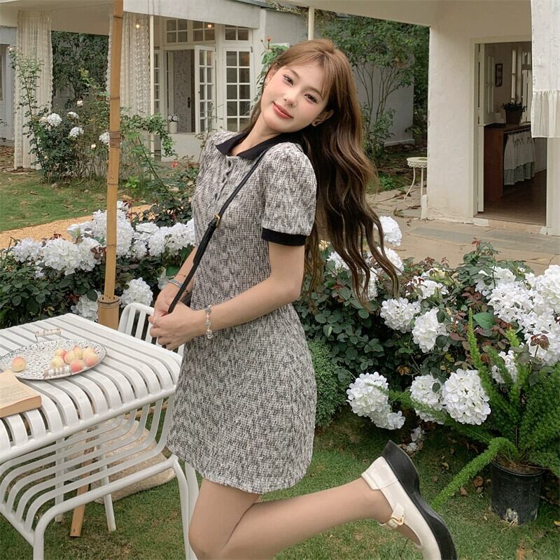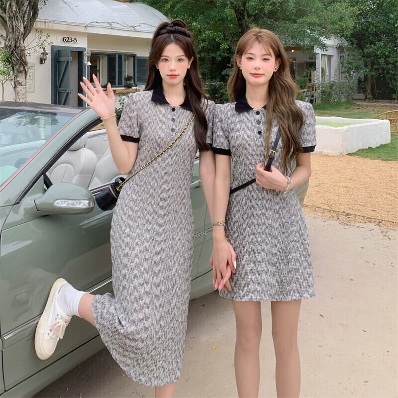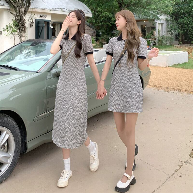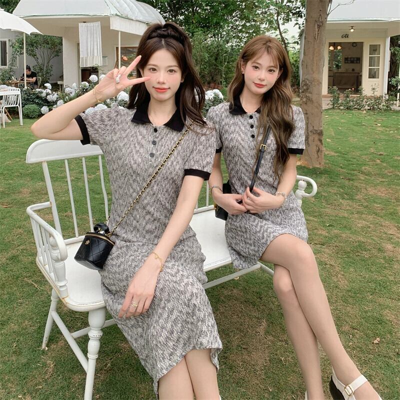プラスサイズの婦人服 2023 トレンディな夏の新しいファットシスターコントラストカラーポロカラードレススリムフレンチオールマッチ花柄スカート 大きめサイズ サマー 夏物 8884172375470201